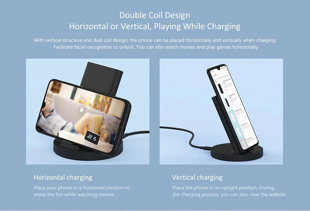 Xiaomi Mi 20W Vertical Wireless Charging Stand 20W Vertical Flash Charging with Safe Stand Horizontal
