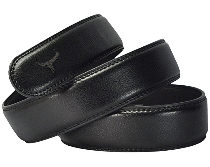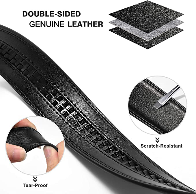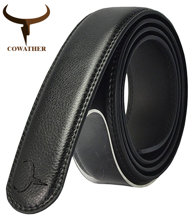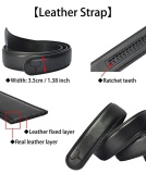 COWATHER Men Ratchet 3.5cm Wide Genuine Leather Belts Strap Replacement, No Buckle Leather Casual Dress Belts Strap Ropes for Men's Automatic Slide Belts Type (No Buckle Head)