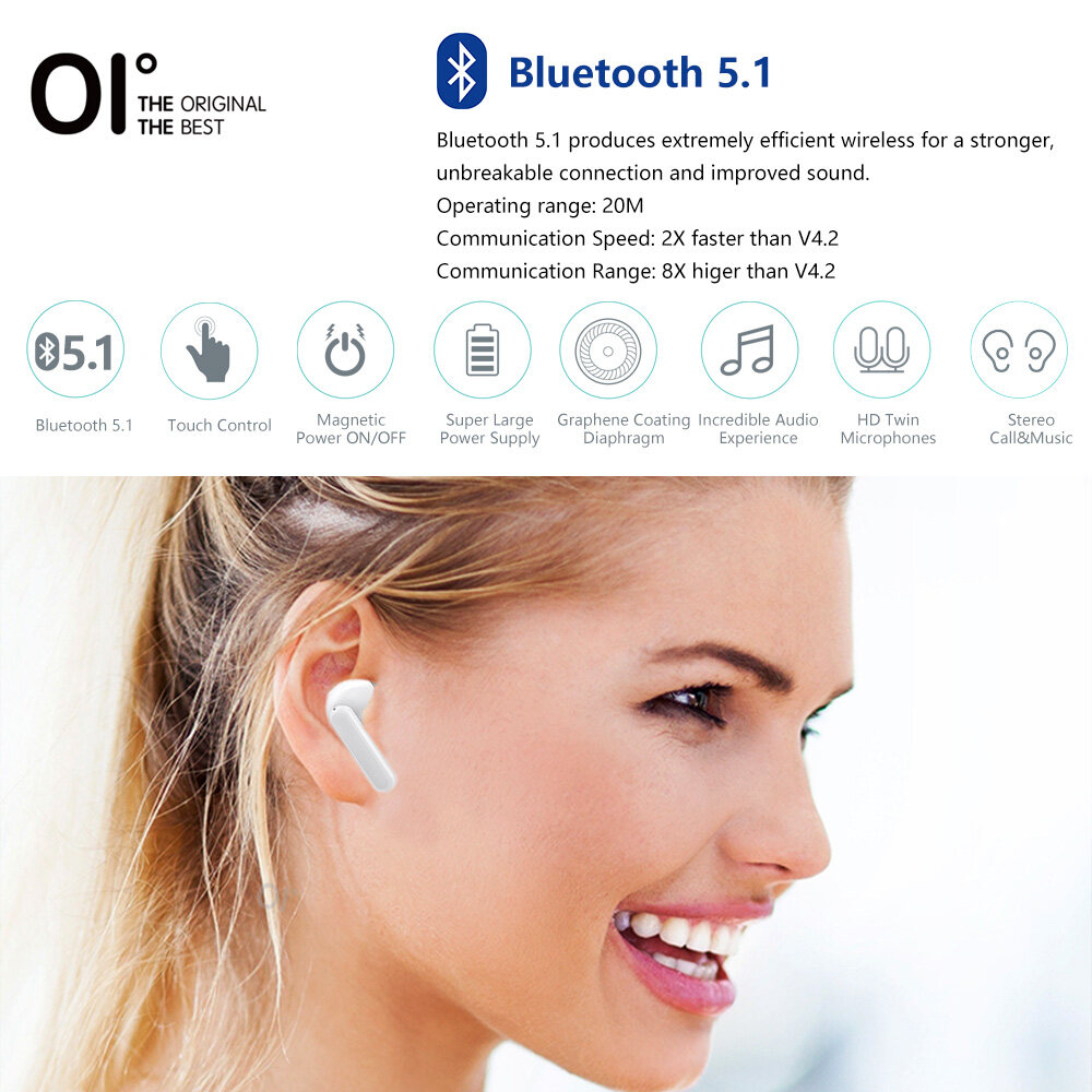 【Upgrade】OI AirSounds Two True Wireless Earbuds Lastest Bluetooth 5.2 20M Transmission distance Noise Cancellation Deep Bass Fast Charging One-Step Pairing Touch Sensor with Volume Control Gaming Earp