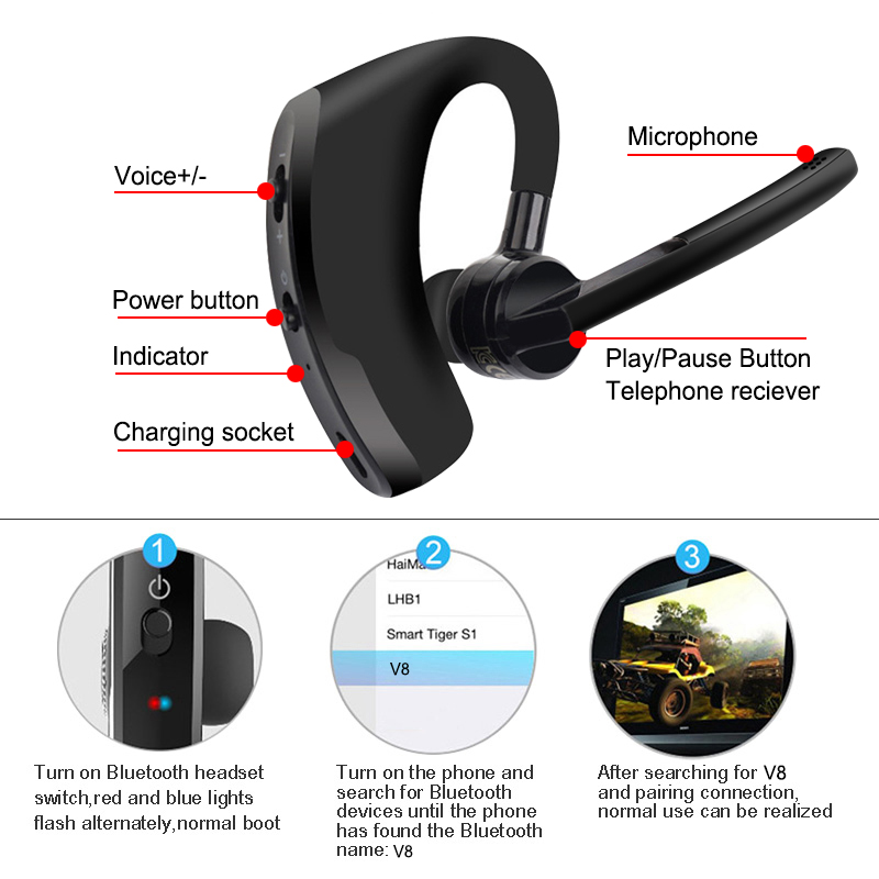 VTUOGE V8 Wireless Bluetooth Earphone with Stereo HD Mic Handsfree Earphones Bluetooth Stereo Headphones For Samsung iPhone Xiaomi