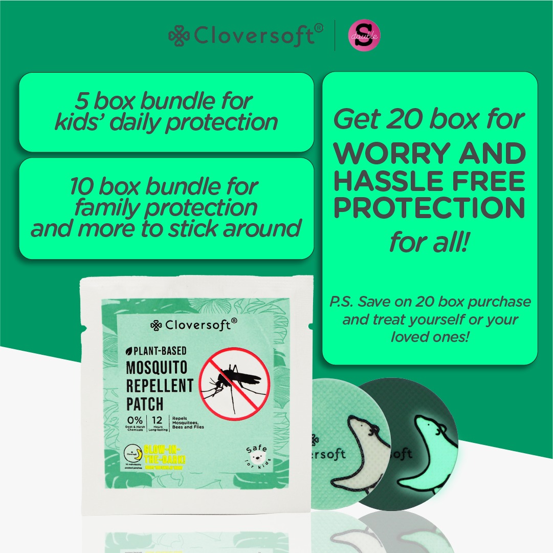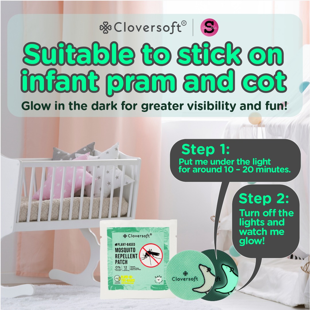 Cloversoft Mosquito Insects Repellent Patch ( Glow in the Dark) is a natural and effective way to keep you and your loved ones safe from persistent mosquitoes. Intricately formulated with safe and all-natural ingredients, the patch can provide up to 12 hours of protection from mosquitoes and garden insects (such as bees and flies). The patch is safe for young children and pregnant women. Free from Deet.