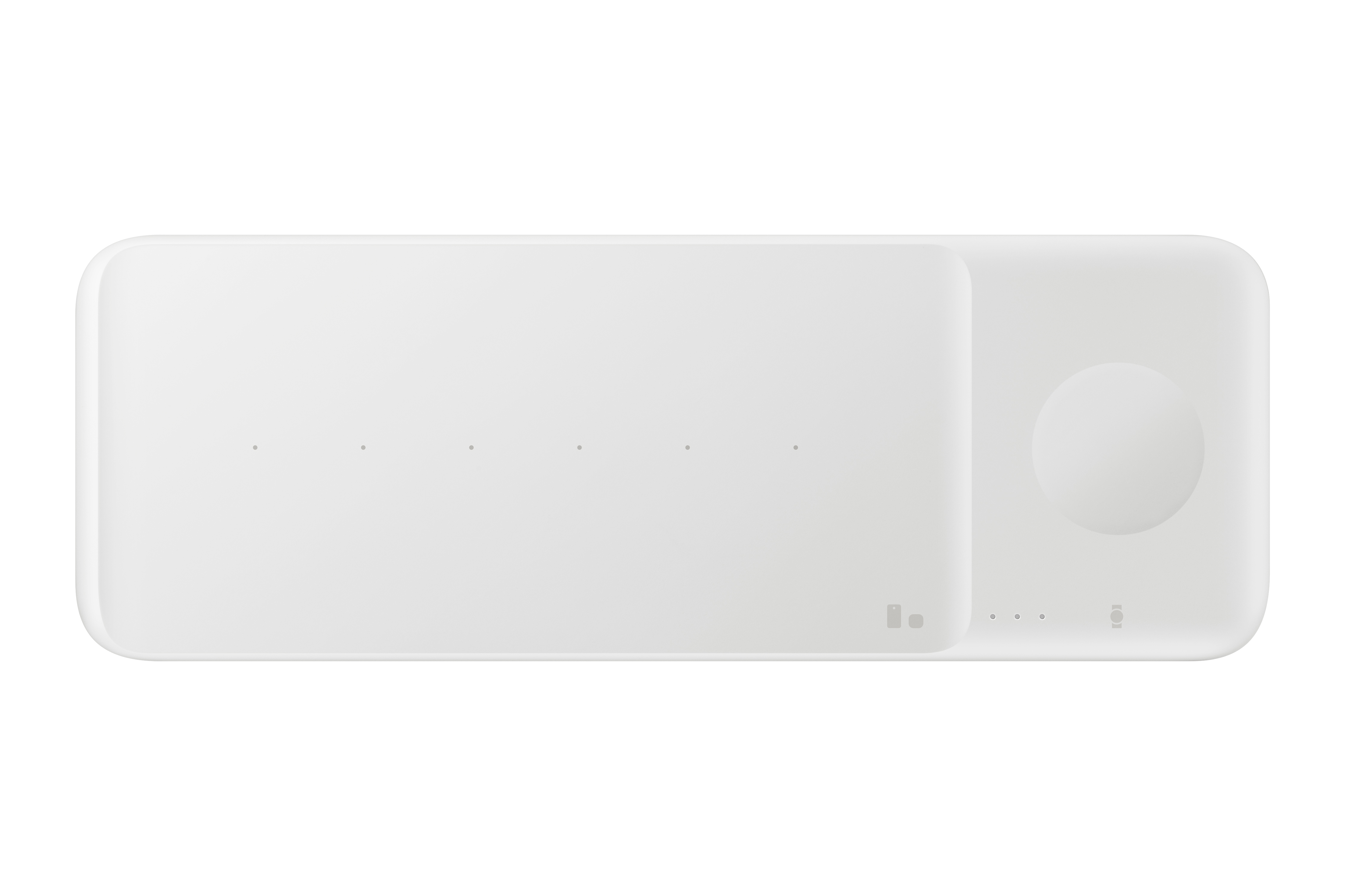 With the dedicated spot for Galaxy watches, you can keep your timepiece powered up to get you through your day. An interior magnet on the right side of the charger guides your watch into place to charge. And on the left you can charge your phone, Galaxy Buds series, and more.