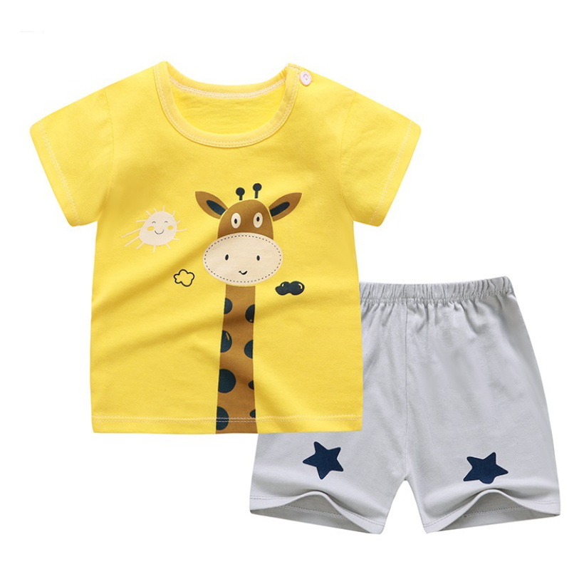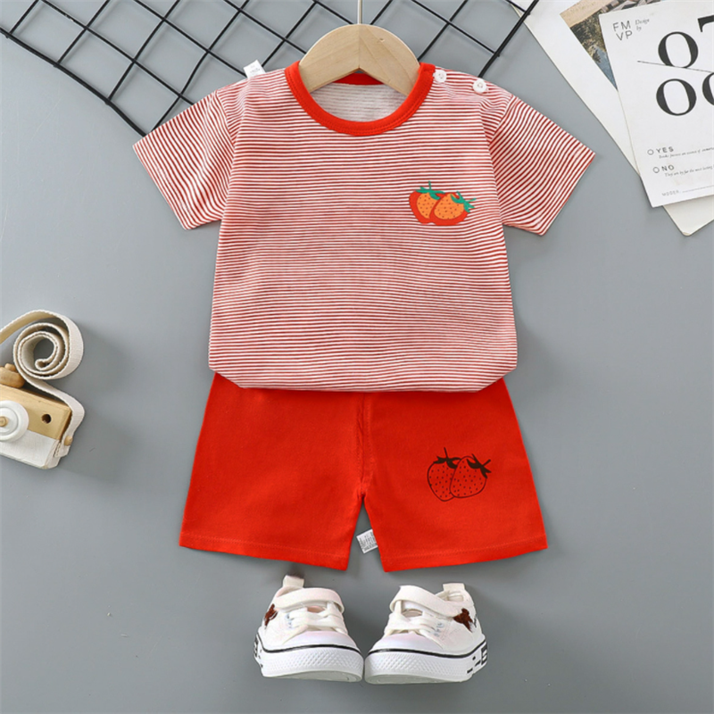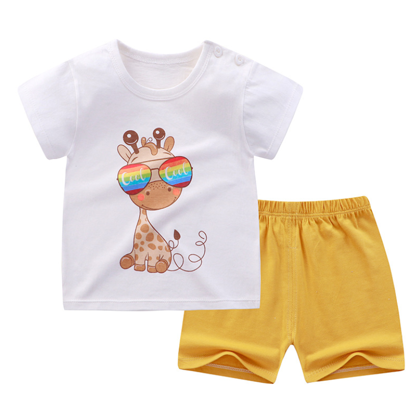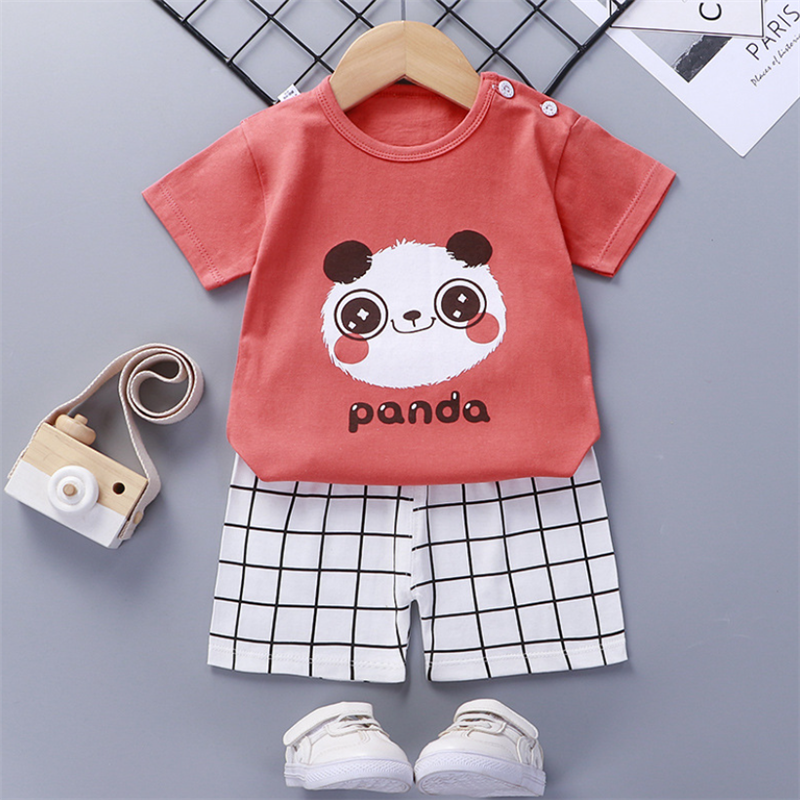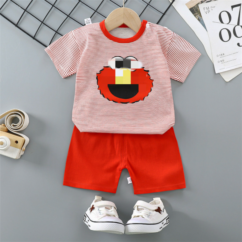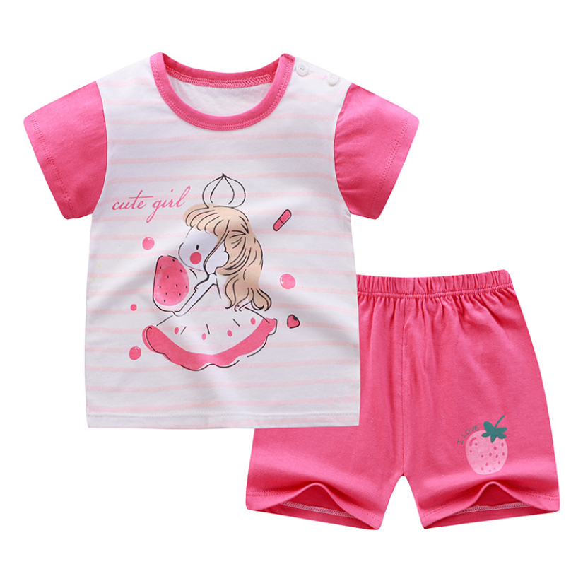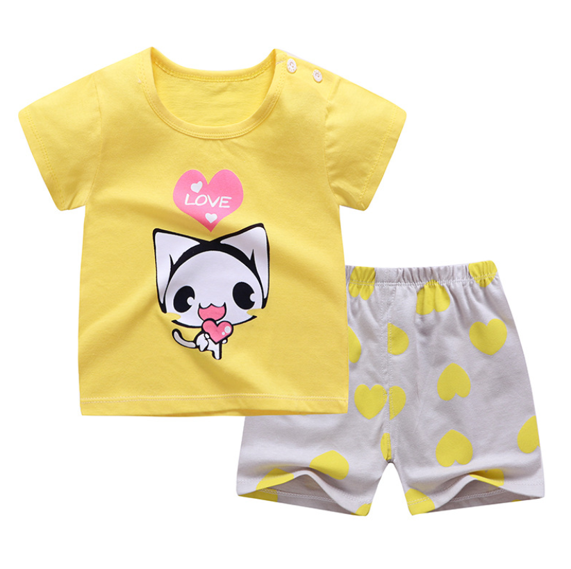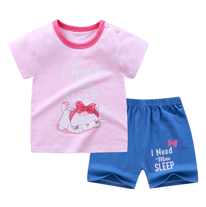 QINN Toddler Baby Kids Boys Girls 100% Cotton Clothing Sets Cute Print T-shirts Tops + Shorts Pants Trousers Home Wear Children Boy Girl Pajamas Clothes Set For 0-7 Years