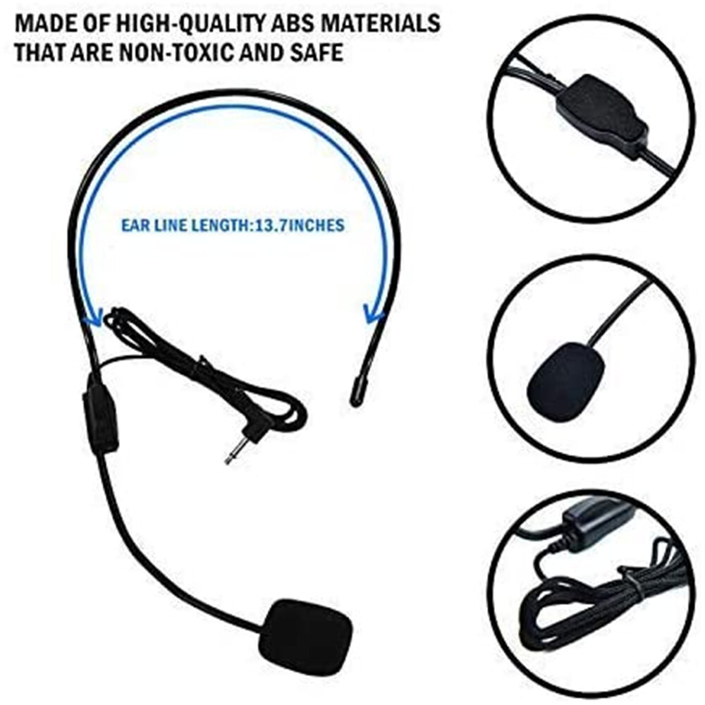 Features:Microphones size: Φ9.7×5.2mmSensitivity: -52dB ± 3dB Directivity: Unilateral directivityOperating voltage: 2.0V Impedance: 2.2k Frequency range: 100-16kHz SNR: greater than 60dBCable:90cm/35inchPlug Type: 3.5mmColor:blackHeadset Microphone Using tips 1.Directional microphone, make sure the microphone above holes (sponges can be seen taking down) alignment mouth2..Distance from the mouth of the most suitable microphone is 10-15mm 3.Put the microphone plug into the corresponding socket on the host (and not into the audio input jack hole) 4.Before weraing the Ear-hanging micropone,please don't turn on the power and volume4.Try to avoid multiple plug microphone plug, so as not to cause poor contact