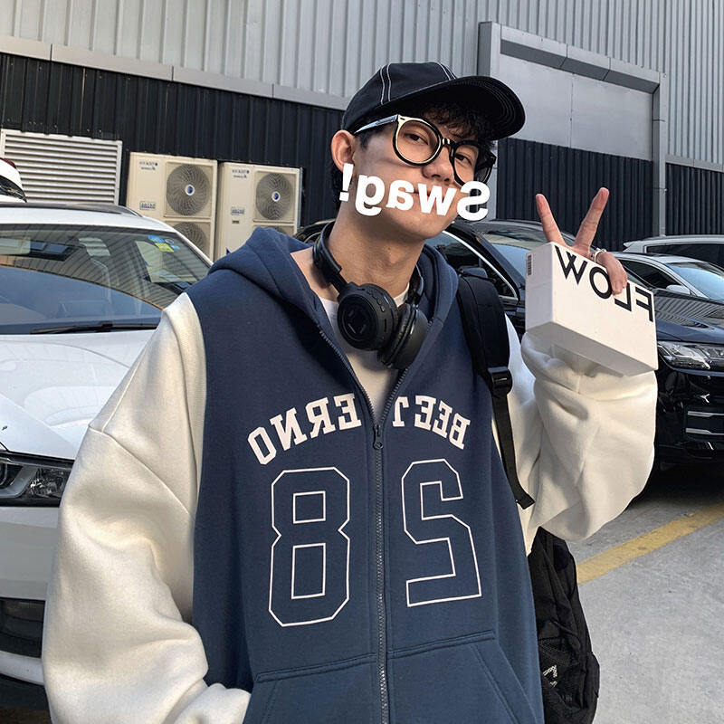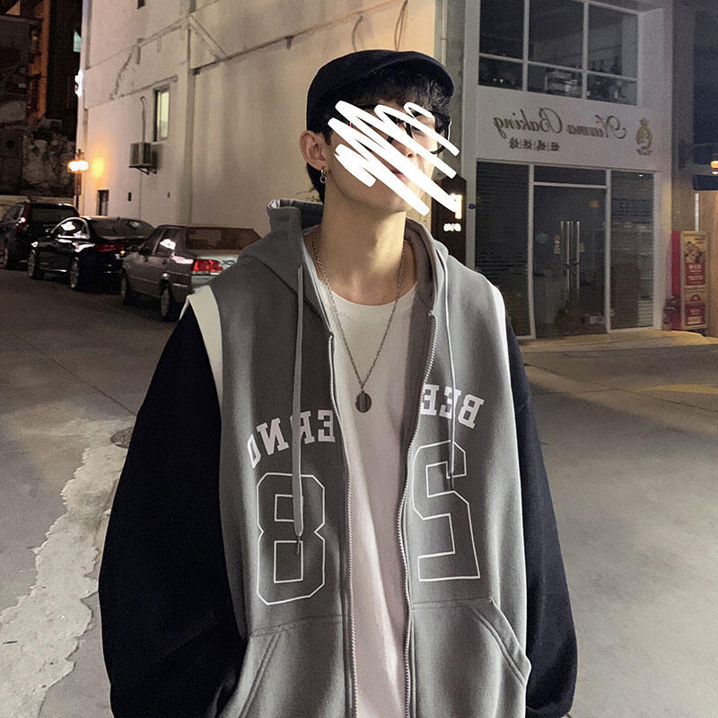 Spring and Autumn Ins Super Popular Trendy Versatile Fake Two Pieces Cardigan Sweater Men's Korean-Style Student Stitching Hooded Sportswear