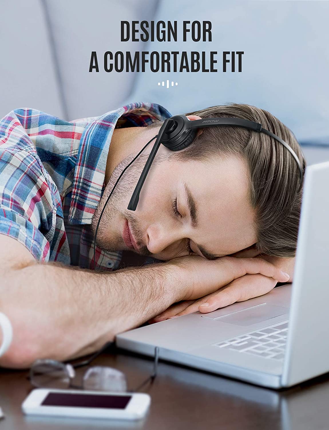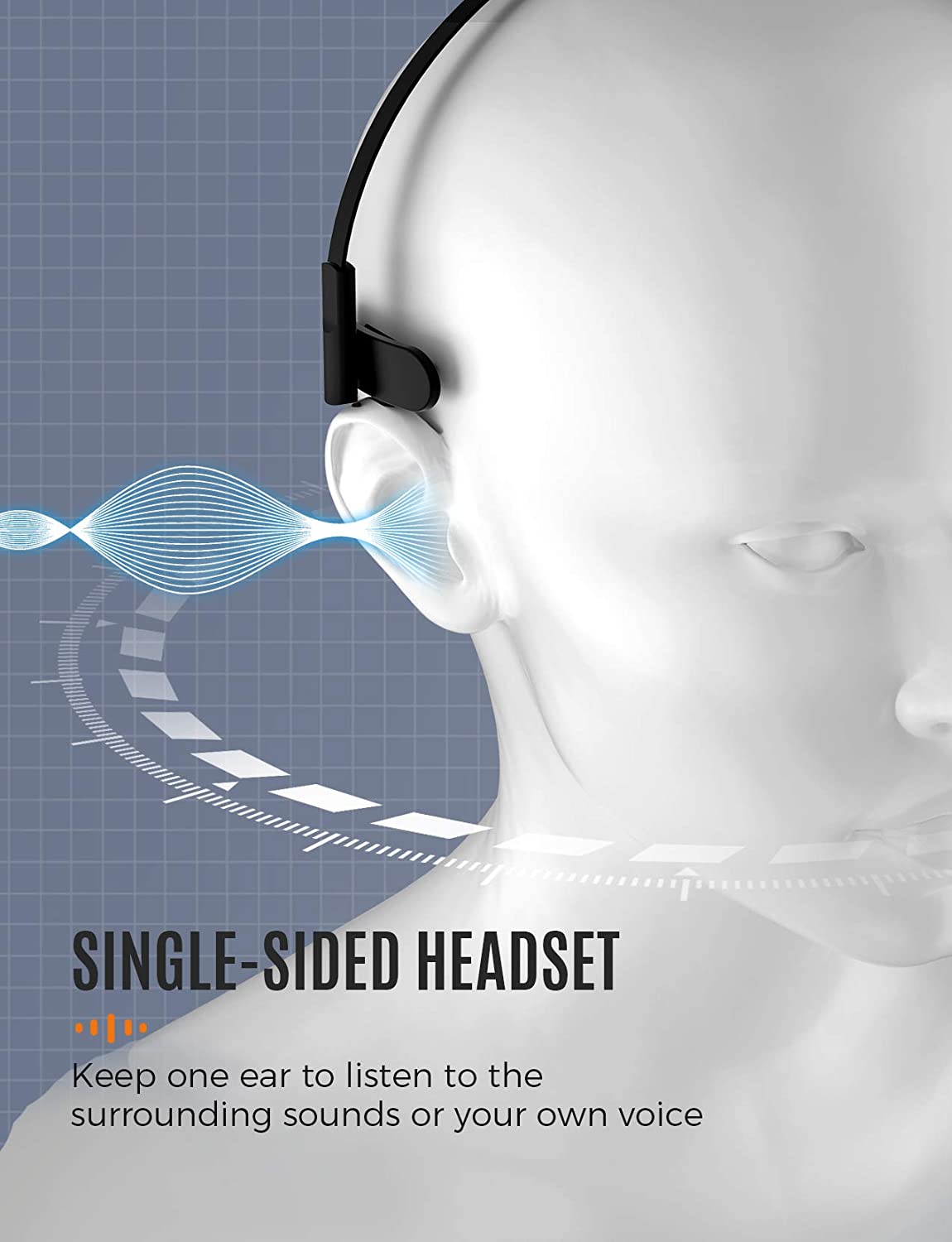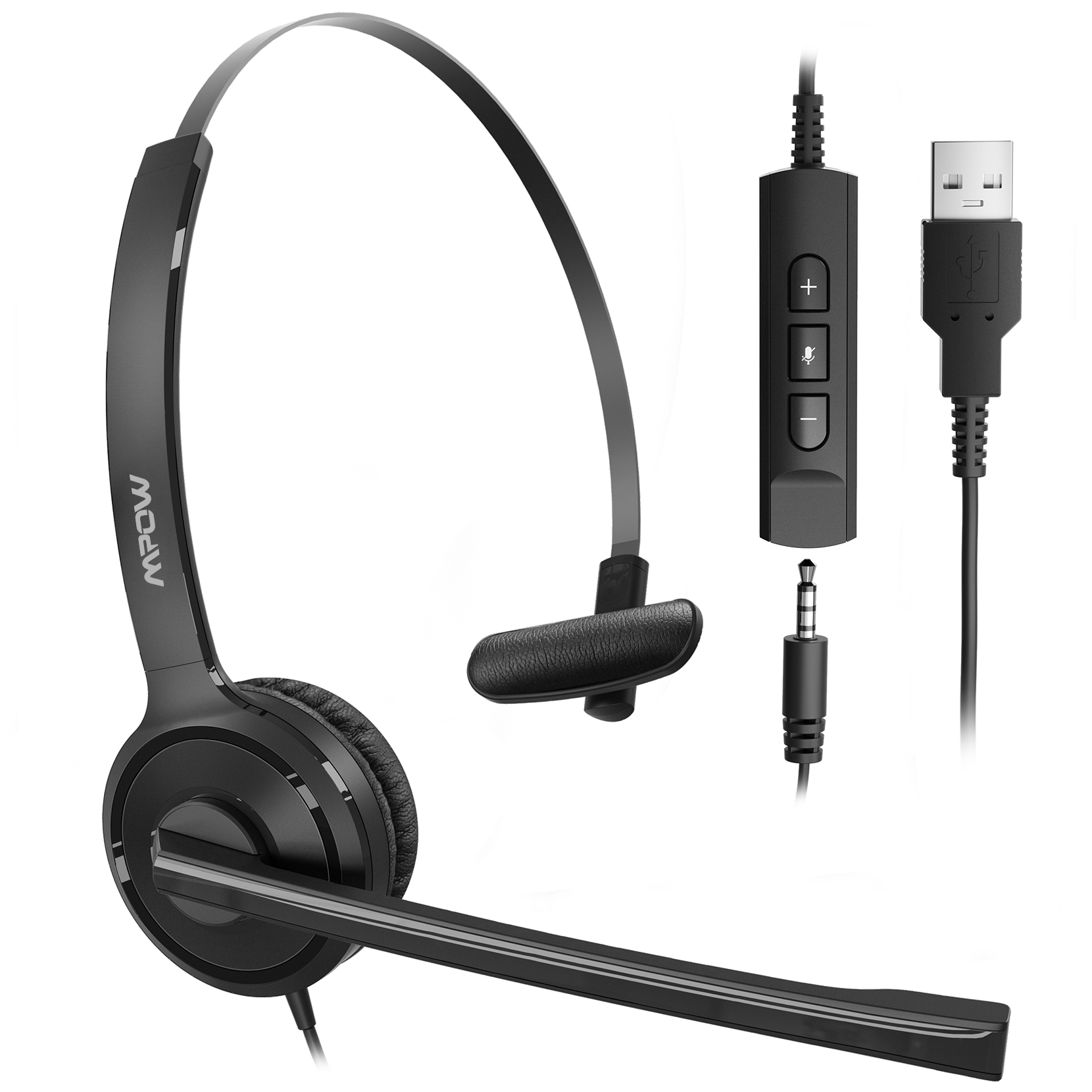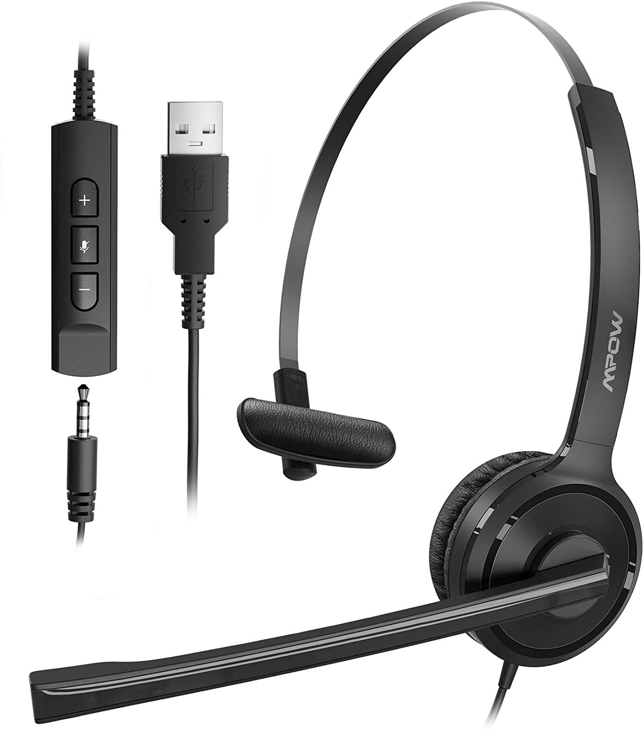 [Mpow] 323 Single-Sided USB Headset with Microphone, Over-The-Head Computer Headphone for PC, 270 Degree Boom Mic for Right/Left Ear, Comfort-fit Call Center Headsets with in-Cord Volume Control