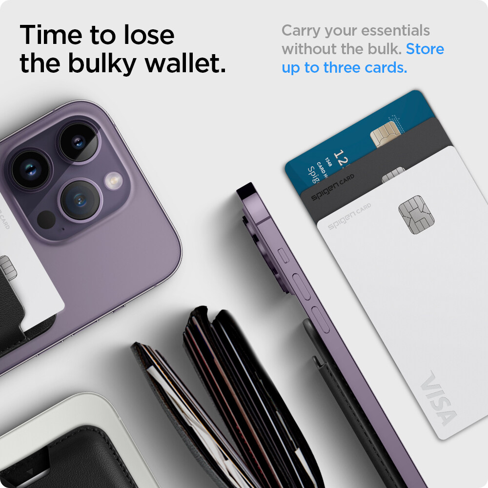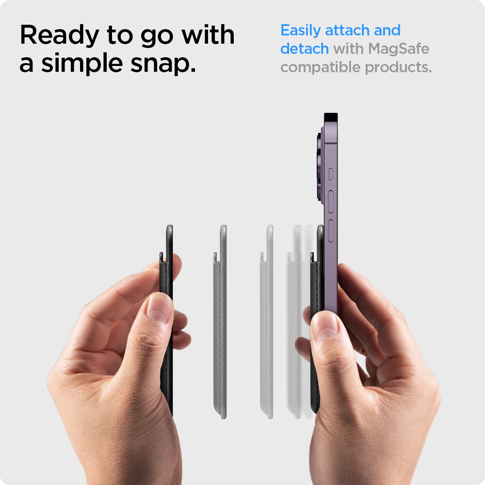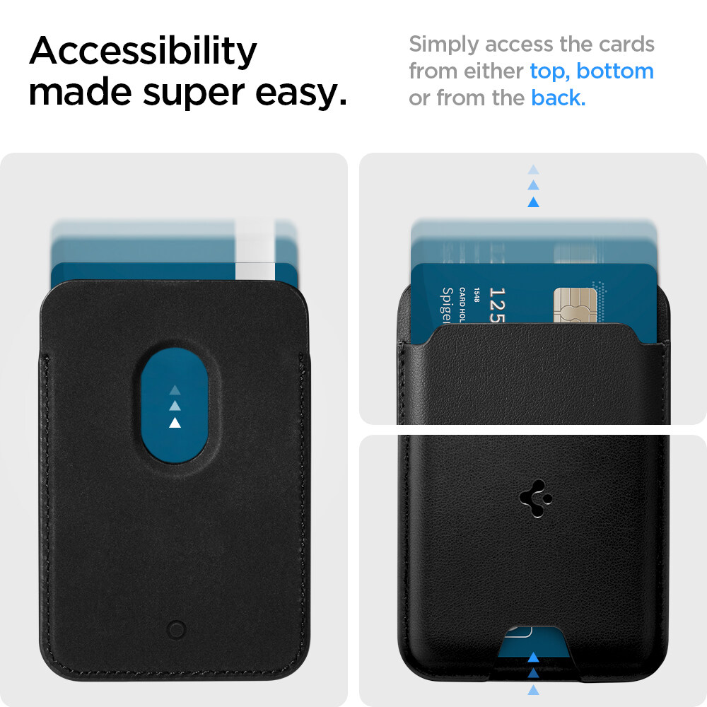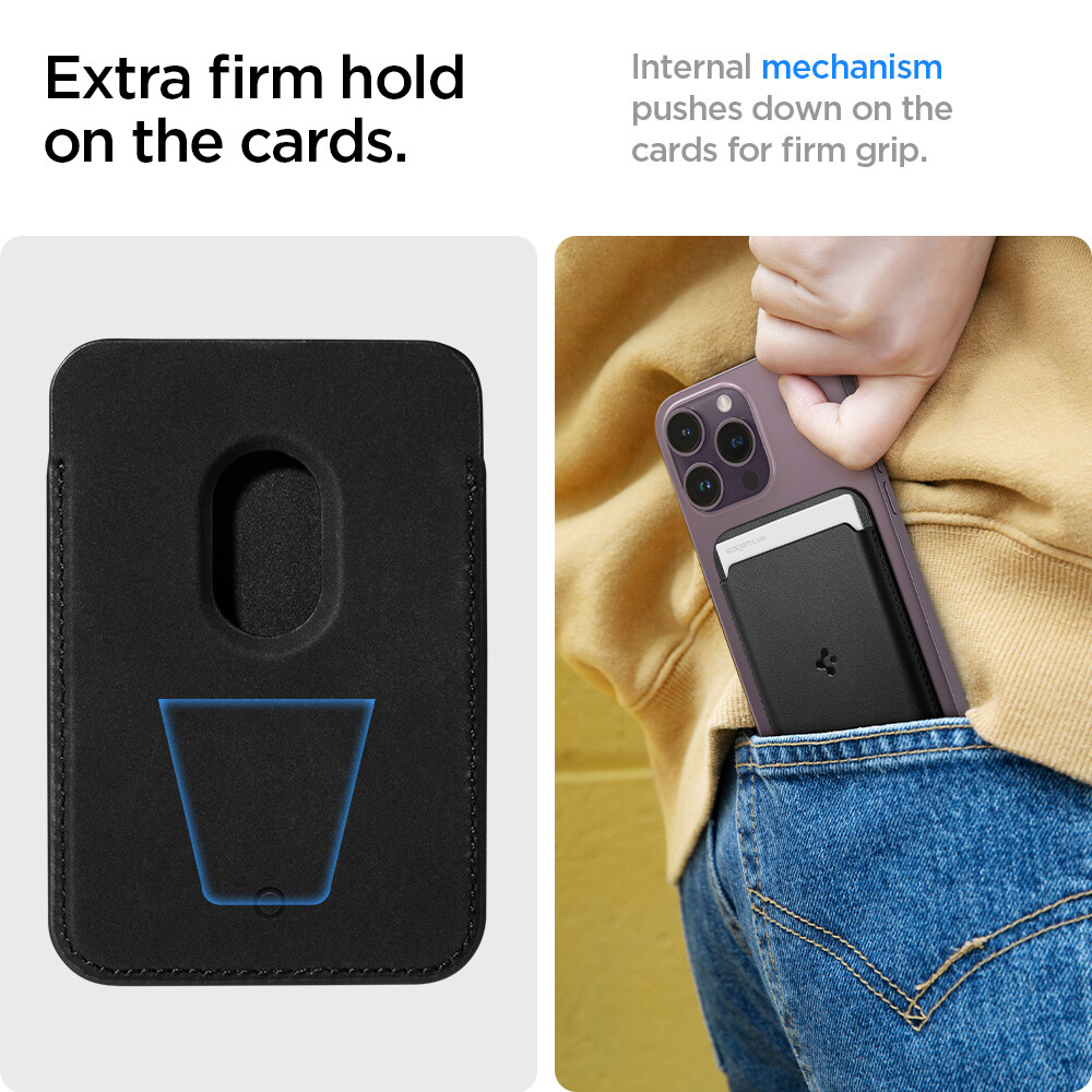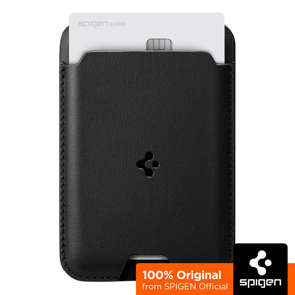 SPIGEN [Valentinus MagFit] Magnetic MagSafe Card Wallet Compatible with iPhones 14, 13, 12 / Black and Brown