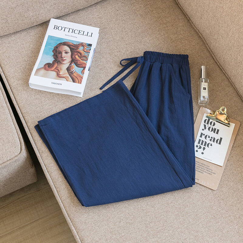 2021 Summer Women Casual Wide-leg Pants Women's Plus Size Loose Cotton Linen Nine-Point Straight Trousers Ladies Home Wear Pants Solid Color Office Work With Pocket Pants Korean