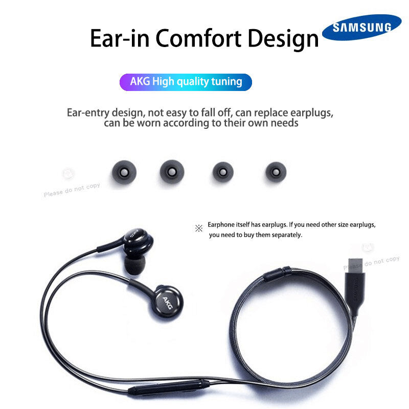 Original Samsung AKG Earphone Galaxy S22 USB C Braided Wired In-Ear Earphones | Type C Headphones | 3-Button With Mic Volume Control | For S20 21 S22 Ultra Note 20 10 9 Plus A91 A90[1 Year Warranty]