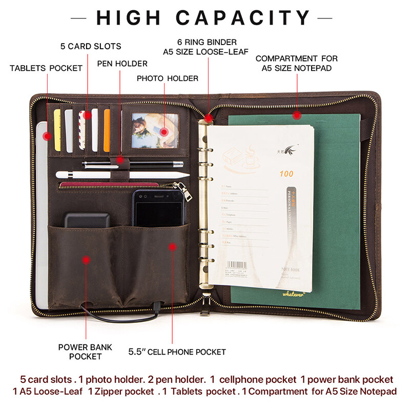 CONTACTS FAMILY For iPad Pro 11" Case 2020 2021 Air 5 10.9" 2022 A5 Binder Folder Genuine Leather Padfolio Cover for ipad Air 10.2“ Tablet case For Galaxy Tab S4 10.5 inch MATEPAD 10.1/10.8 inch