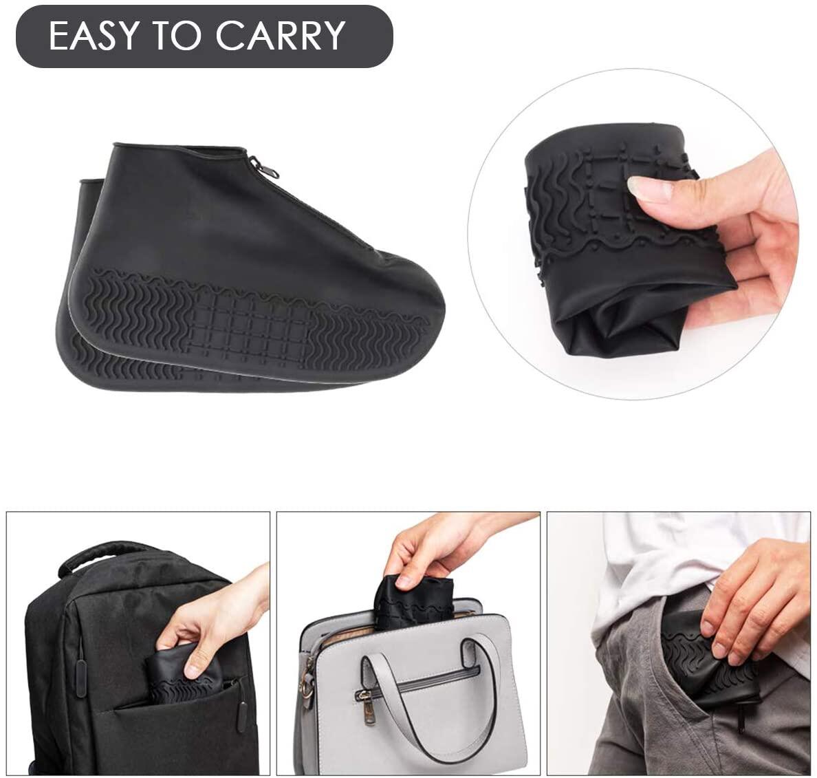 Reusable Shoe Covers, Silicone Waterproof Overshoes with Zipper, Outdoor Shoe Protectors Not-Slip Rain Galoshes for Men Women