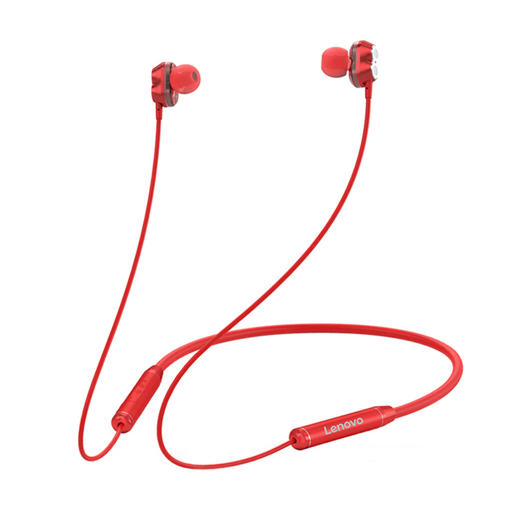 Lenovo HE08 BT 5.0 Neckband Wireless Headphone w/Dual Dynamic + 4 Speakers/Noise Reduction HiFi Stereo Earphone Waterproof Sport Magnetic Headset With Mic Compatible with iOS/Android