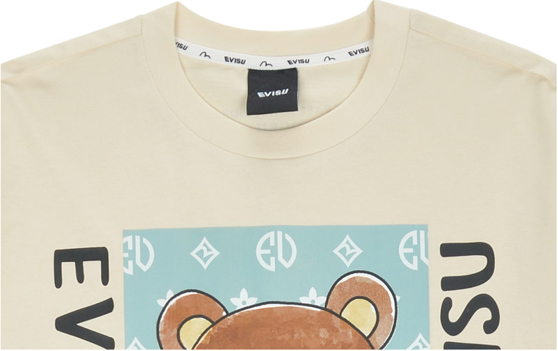 [EVISU KOREA] Overfit Digital Print Teddy Bear Short-sleeve T-shirt Casual Men Women Tee Couple Tops Cotton Street Style Korean Fashion