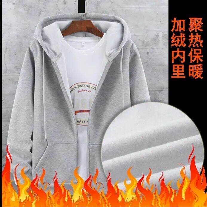 Autumn and Winter plus Size Zipper Sweater Men's Fleece-Lined Thickened Cardigan Large Loose Men's Hoodie Coat