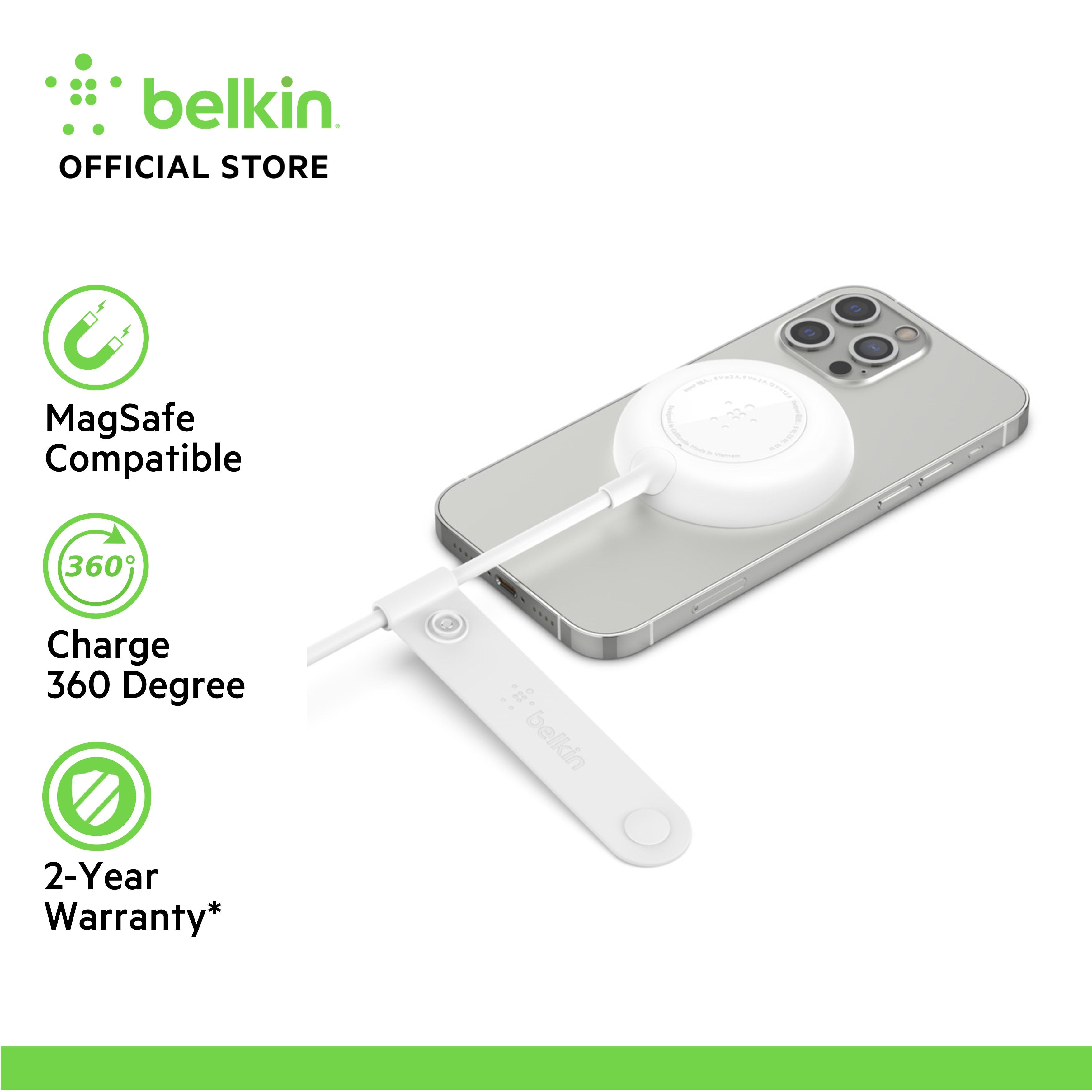 Belkin WIA005my BoostCharge Magnetic Portable Wireless Charger Pad 7.5W with Power Adapter