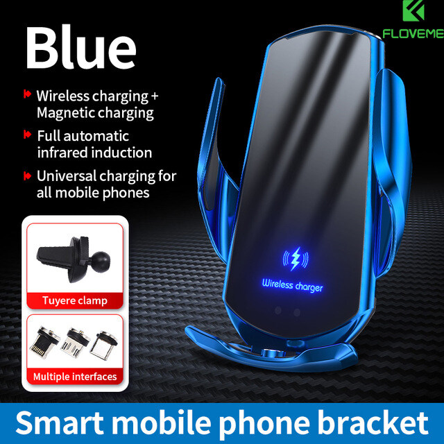 FLOVEME For 15W Automatic Qi Car Wireless Charger for Samsung Galaxy S21 Ultra iPhone 12 11 Pro Max Universial Aircon Vent Magnetic USB Infrared Sensor Phone Holder Mount