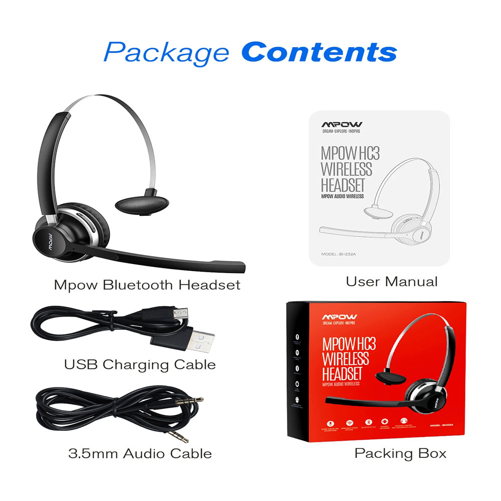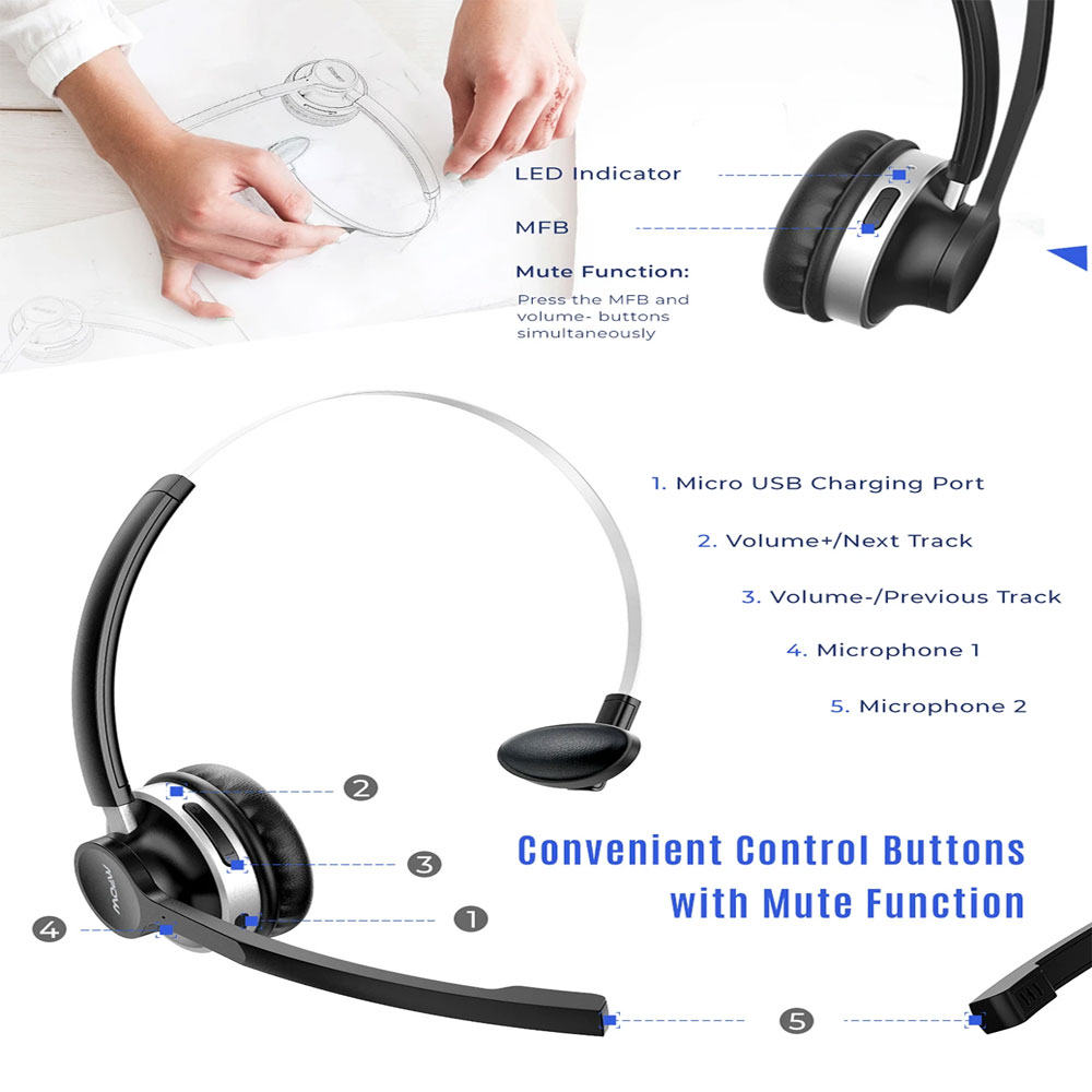 [Mpow] HC3 Bluetooth 5.0 Wireless Mono Headset with Microphone with Dual Noise Canceling, Wired and Wireless useable