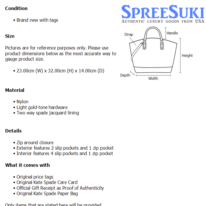 Original price tags Original Kate Spade Care Card Official Gift Receipt as Proof of Authenticity Original Kate Spade Paper Bag
