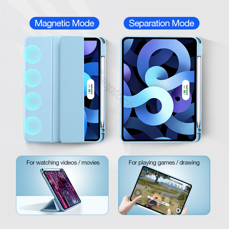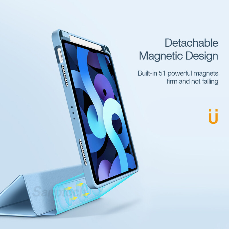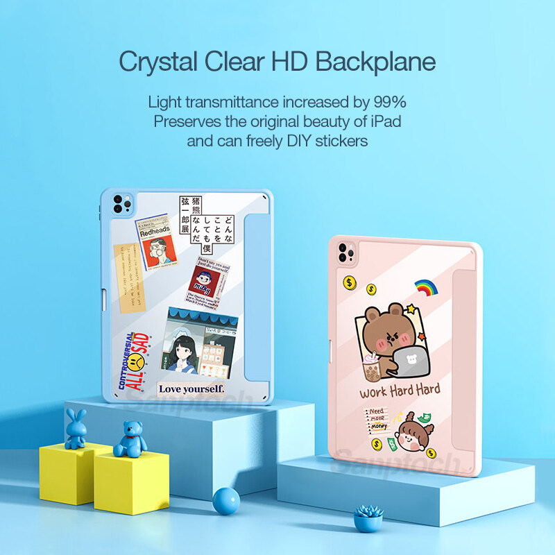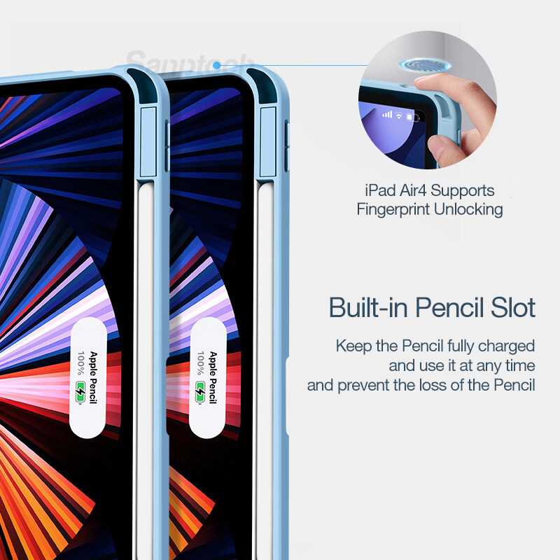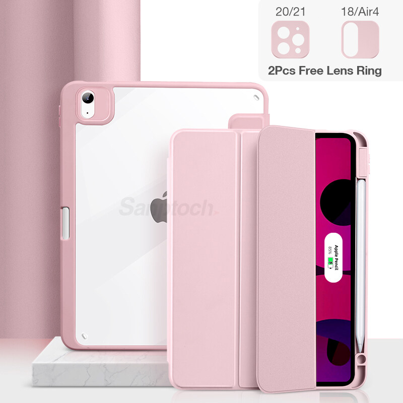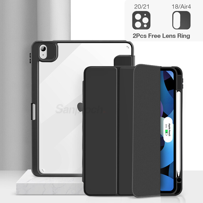 Sanptoch Hybrid Clear Magnetic Case For iPad Pro 11 / Air4 10.9 / Air3 10.5 / 9th 8th 7th Generation 10.2 / Mini6 2021 2020 Built-in Pencil Holder For Storage & Wireless Charging Full Cover Smart Slee