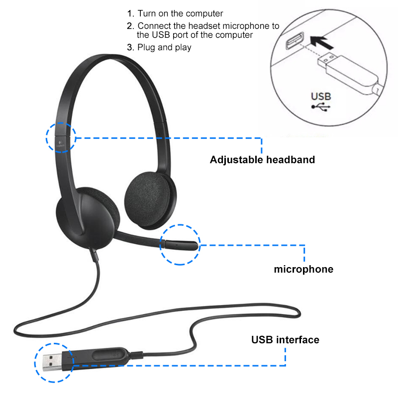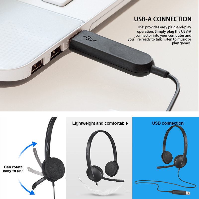 Logitech H340 USB Headset Gaming Meeting Video Wire Headphones with Noise-Cancelling Mic