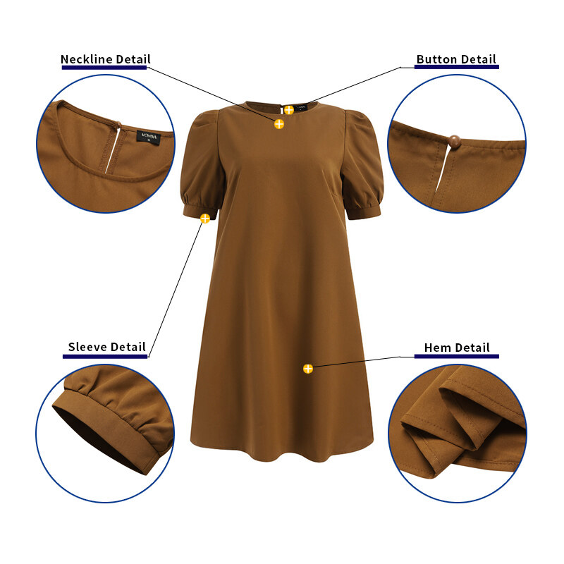 VONDA Women Summer Solid Color O Neck Casual Loose Knee-length T-shirt Dress (Korean Causal)