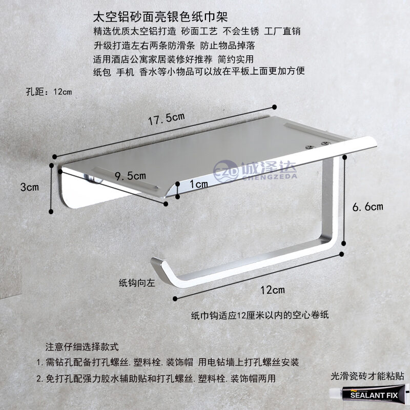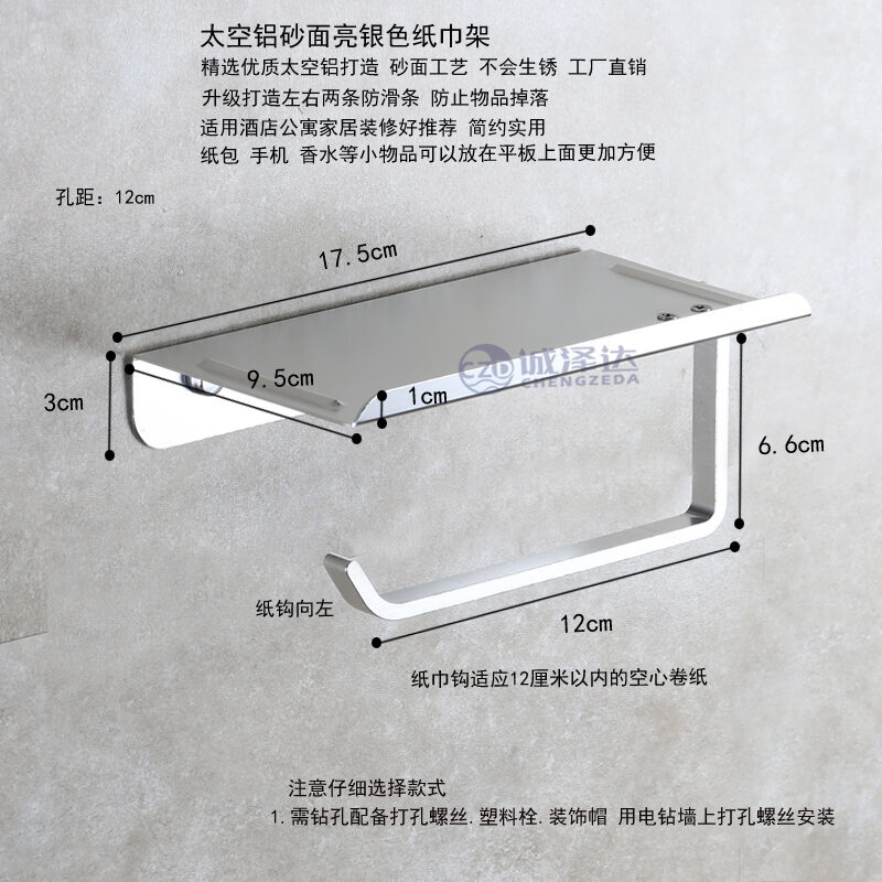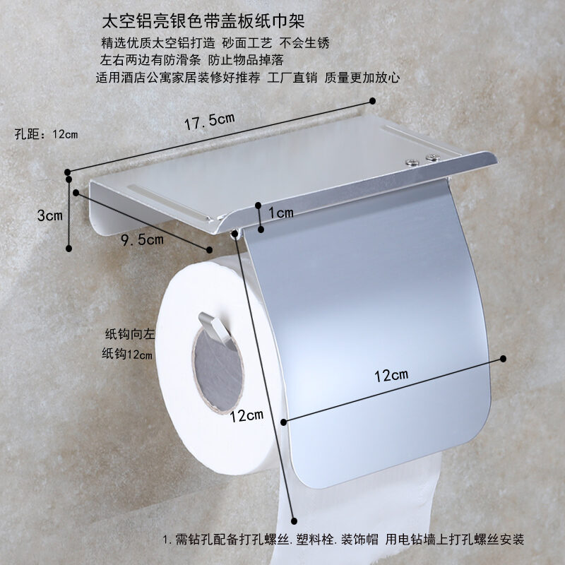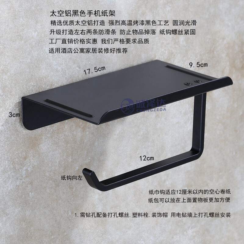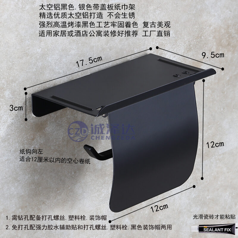 Punch-Free Tissue Box Toilet Black Tissue Holder Space Aluminum Toilet Roll Paper Tube Bathroom Wall Hanging Tissue Holder