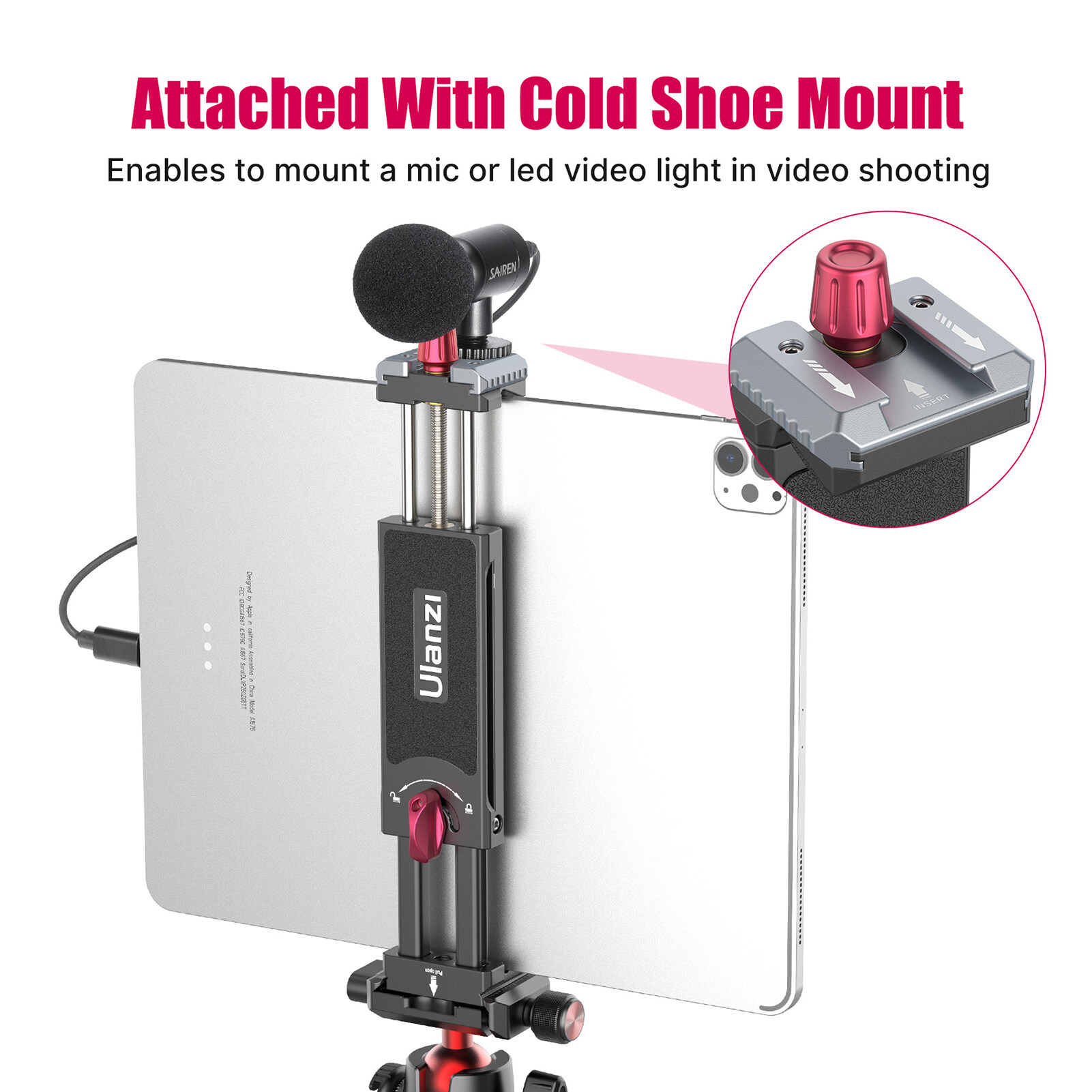 Ulanzi U-PAD III Universal Smartphone Tablet Tripod Mount Metal Phone Tablet Holder Clamp 10cm-23cm/ 3.93in-9in Adjuatable Width with Cold Shoe Mount Replacement for iPhone 13/12/11, iPad/ iPad Mini/