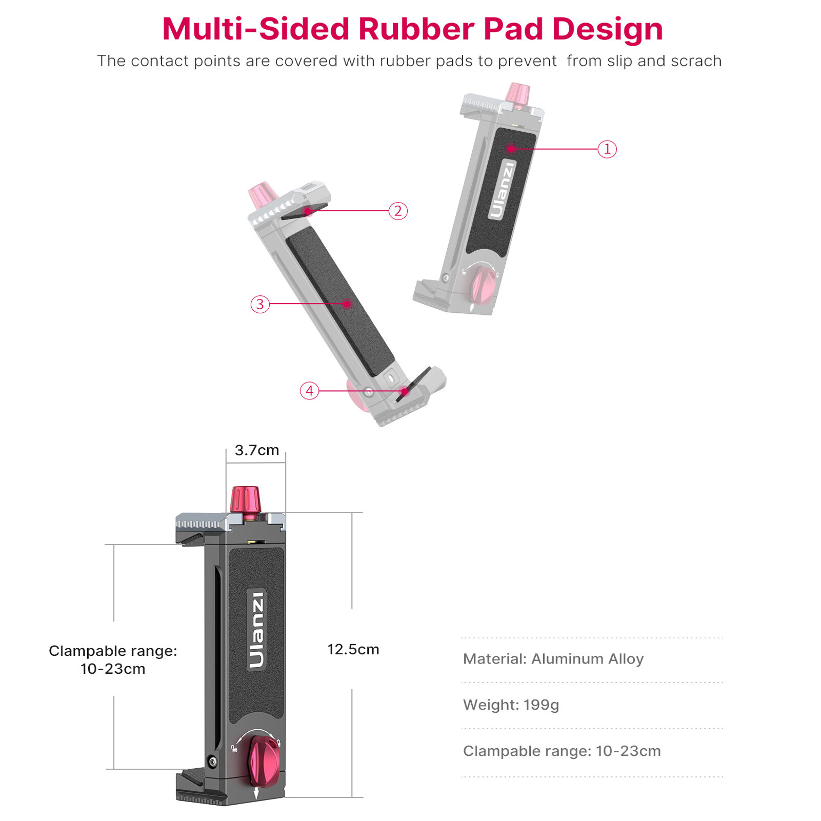 Safe to Your Devices: Rubber pads cover the contact parts of device and clamp, protecting your tablet/smartphone against scratch, and prevent from slip, safe and reliable.