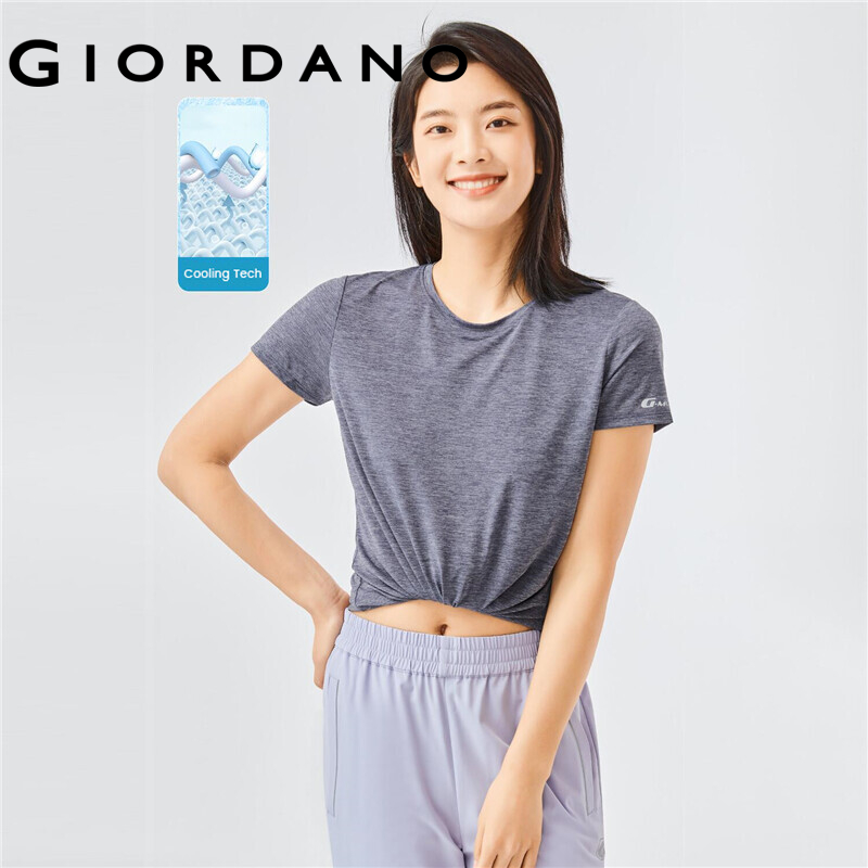 GIORDANO Women T-Shirts G-MOTION High-Tech Cooling Lightweight T-Shirts Stretchy Crewneck Short-Sleeve Print Casual Tee 05322411