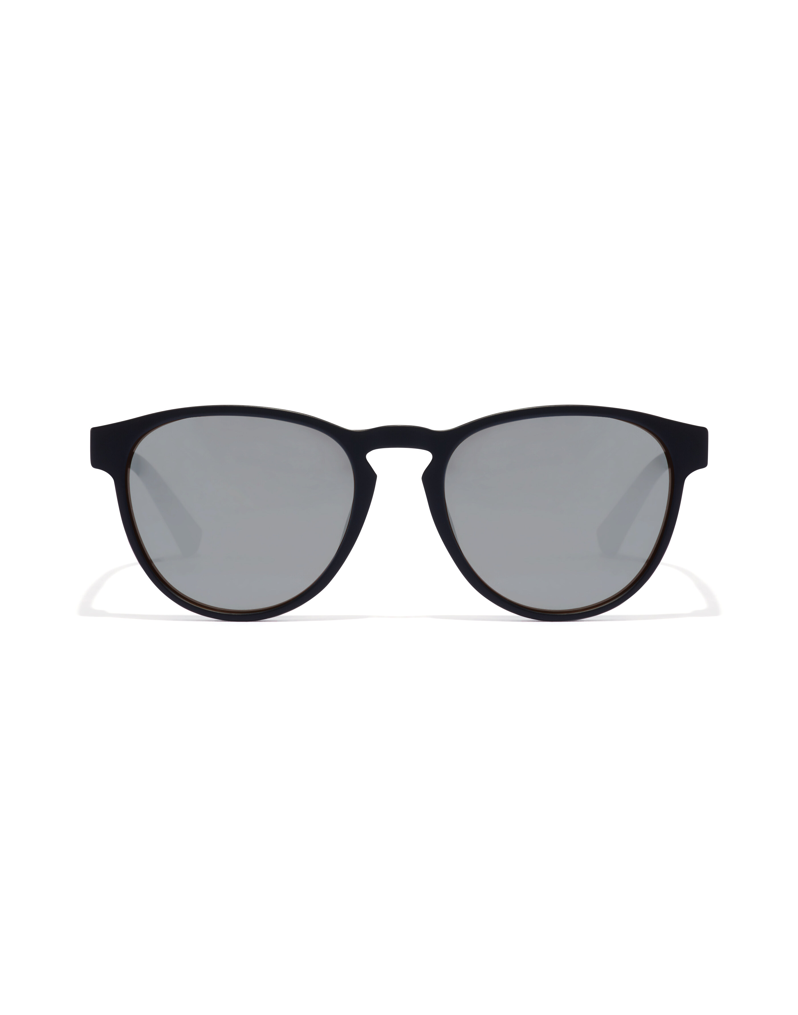 An oversize vintage panto style with classic keyhole bridge. The matt black frame and mirrored chrome lenses combine for an understated retro look.