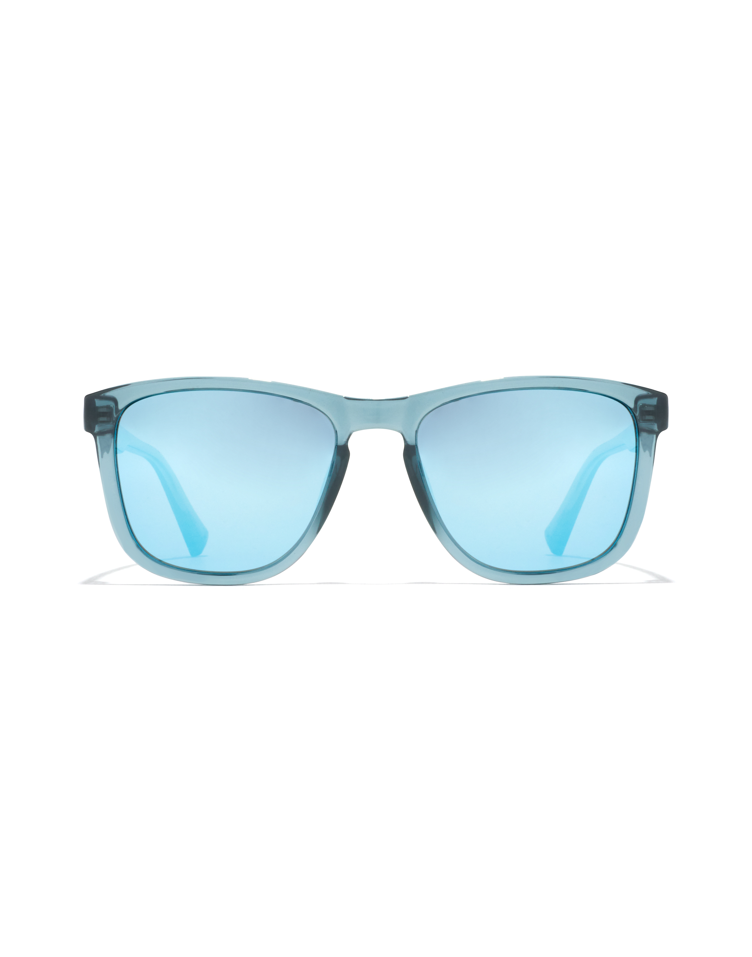Square, simple, and timeless model with chrome-blue polarized lenses with a mirror effect and glossy translucent finish. Slim and lightweight frame with an especially wide bridge, an element that gives extra comfort to this sporty design.