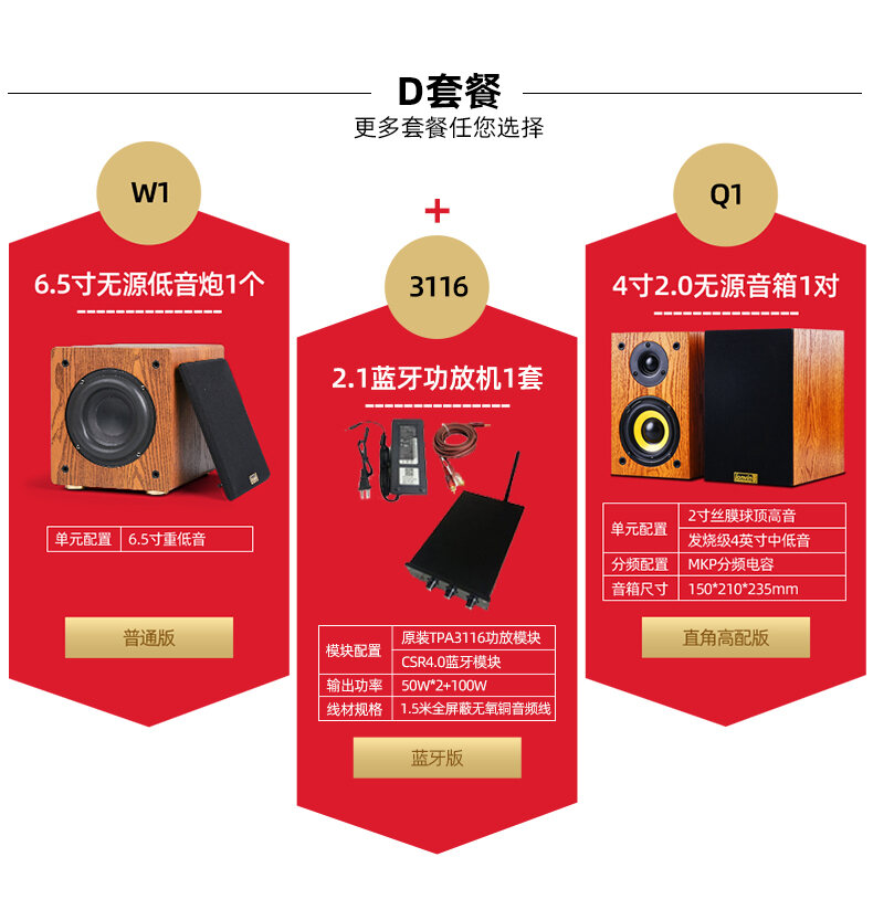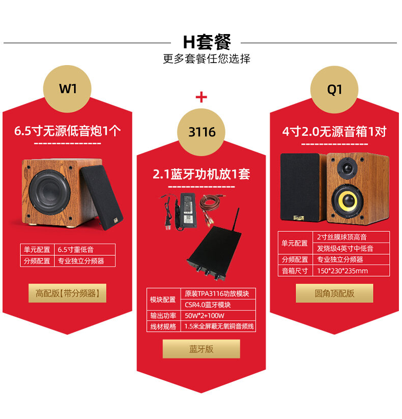 Subwoofer 6.5-Inch Passive High-Power Subwoofer Wooden 5.1 Home Theater Home Amplifier Audio