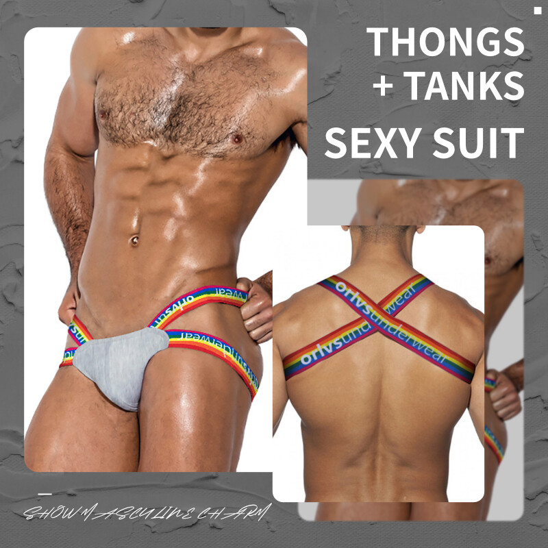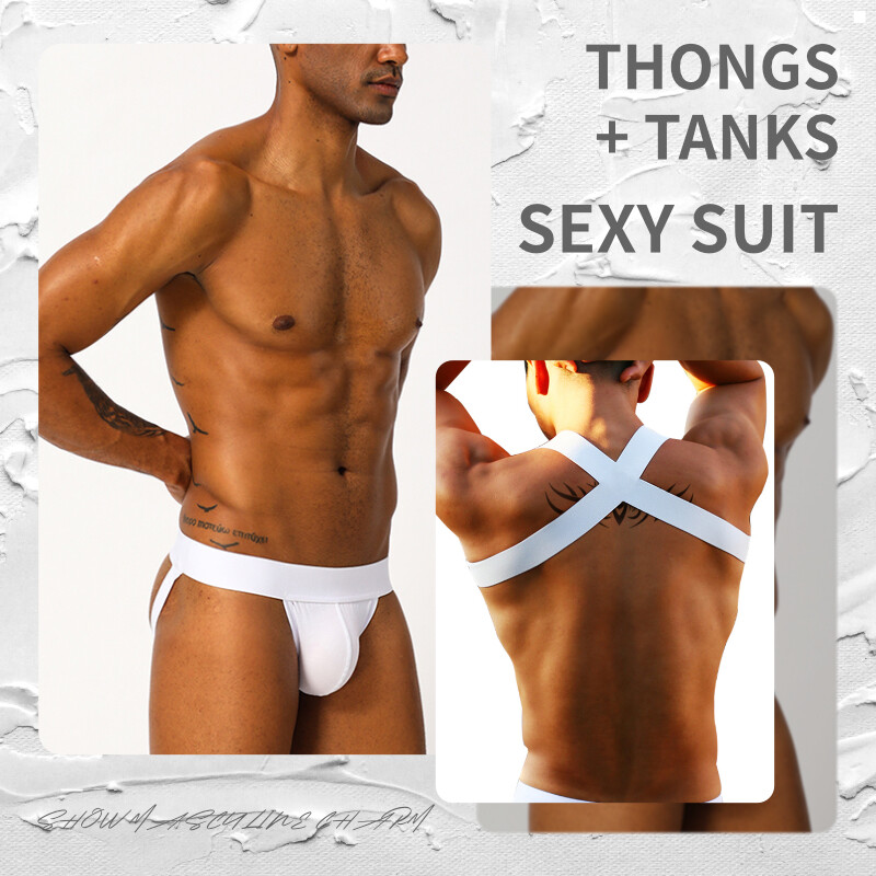 CMENIN Hot Sale Cotton Hip Raise Sexy Men Underwear Jockstrap Panties Stringi Men's Thong And Tank Top Set Man Underpants For Men BSTT16-20