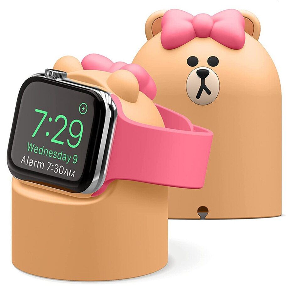 NOTE: Dock only, not included the charger! Cute Charger Stand Mount Silicone Duck Bear Dock Holder for Apple Watch Series 7 6 5 4 3 2 SE 44mm/42mm/40mm/38mm Charge Cable