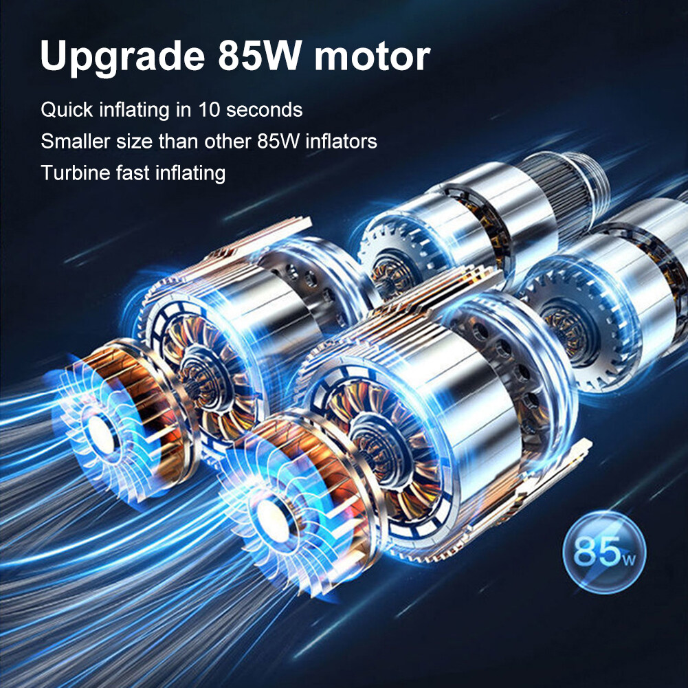 *3. [Fast Inflating] 120W copper motor generates high power to fully inflate a tire in a few seconds.