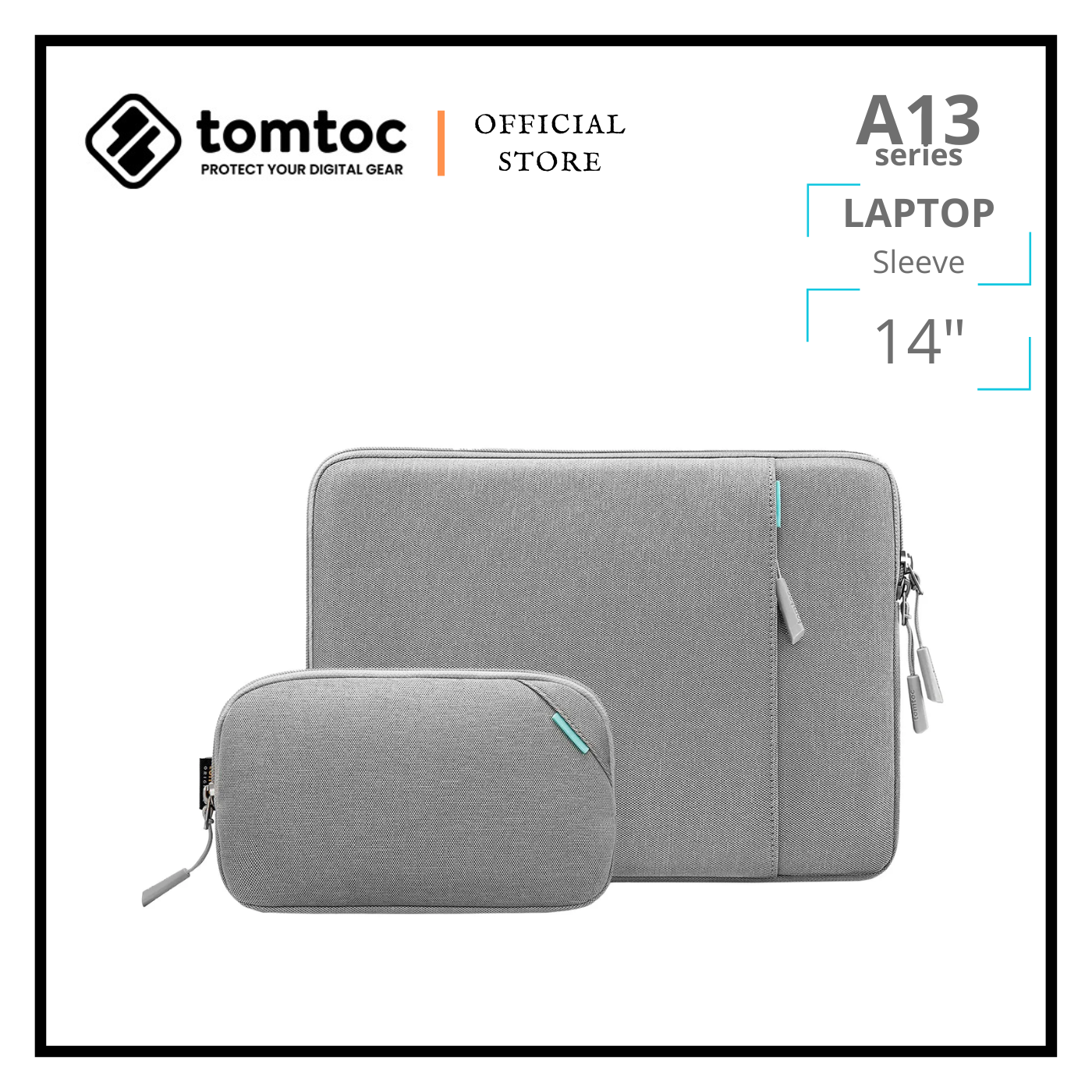 tomtoc Versatile A13 Laptop Sleeve & Accessory Pouch For 14" New MacBook Pro | Black / Gray