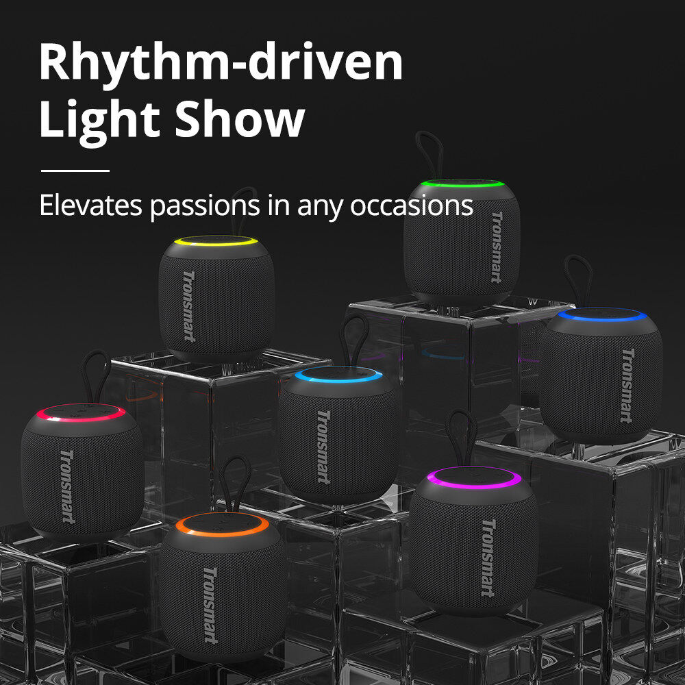 Original Tronsmart T7 Mini Portable Bluetooth Speaker TWS Bluetooth 5.3 Speaker with Balanced Bass, IPX7 Waterproof, LED Modes for Outdoor