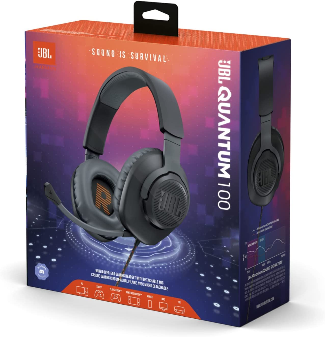 (NEXT DAY DELIVERY) JBL Quantum 100 - Wired Over-Ear Gaming Headphones - Black