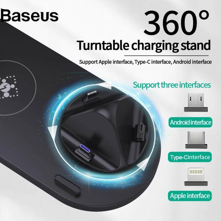 Baseus B-07A for iPhone / Airpods Pro / iWatch 15W Wireless Charger Stand Rotatable Fast Charging Station