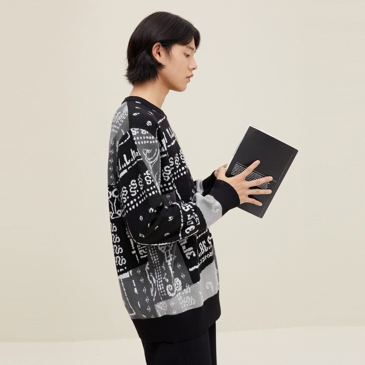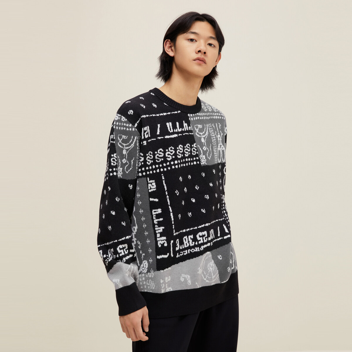 Semir Sweater Men Stitching Contrast Color 2022 Winter New Fashion Loose Knitted Sweater Trend