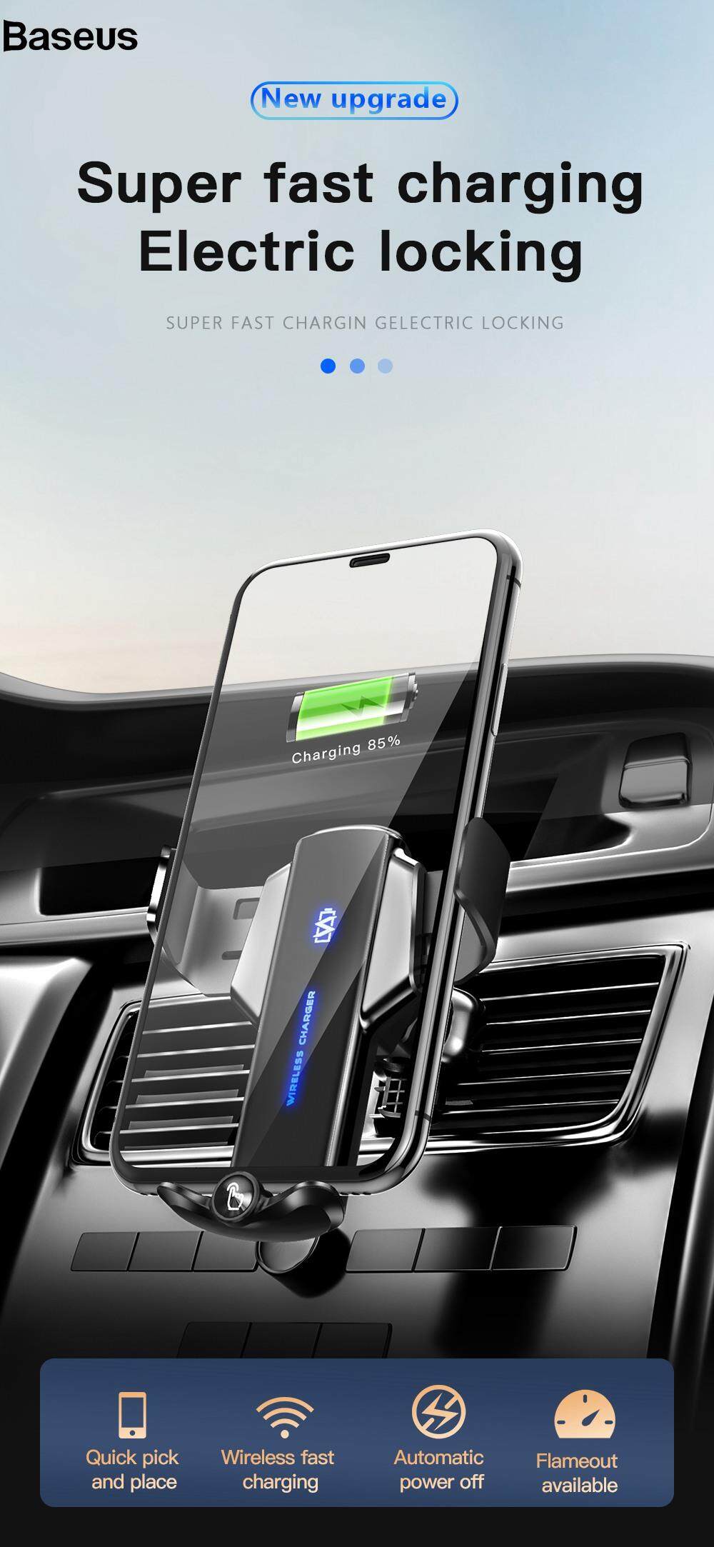 Baseus P9 Electric Locking Car Air Outlet Phone Holder 15W Wireless Charger Universal Cellphone Bracket