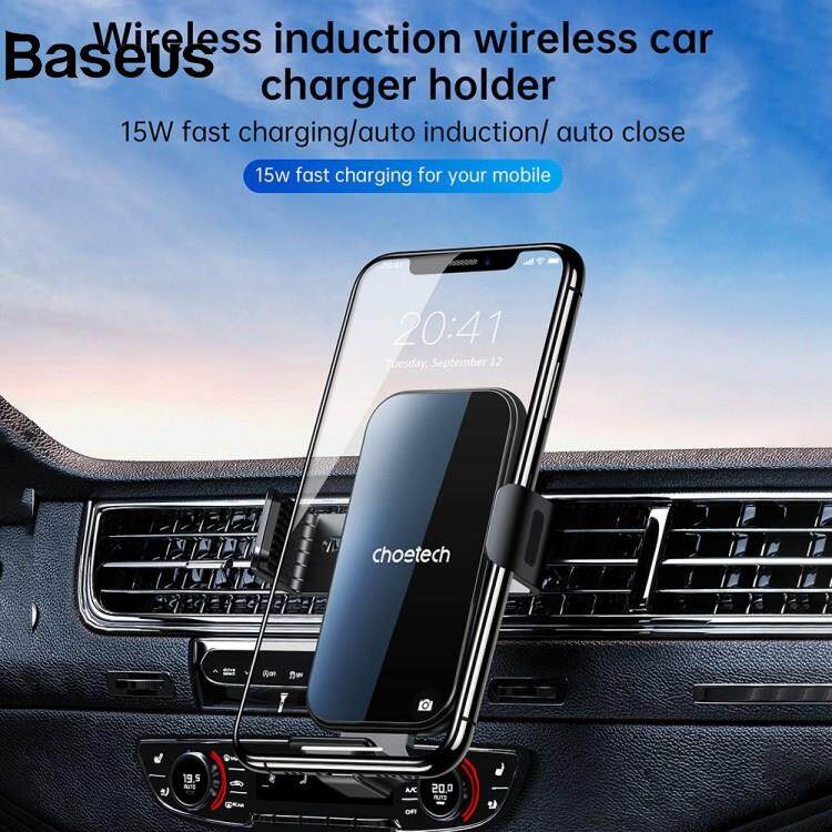 Baseus CHOETECH T201-F Car Air Vent Clip Automatic Lock Wireless Charger Phone Holder with Lightning / Type-C / Micro Magnetic Adapters