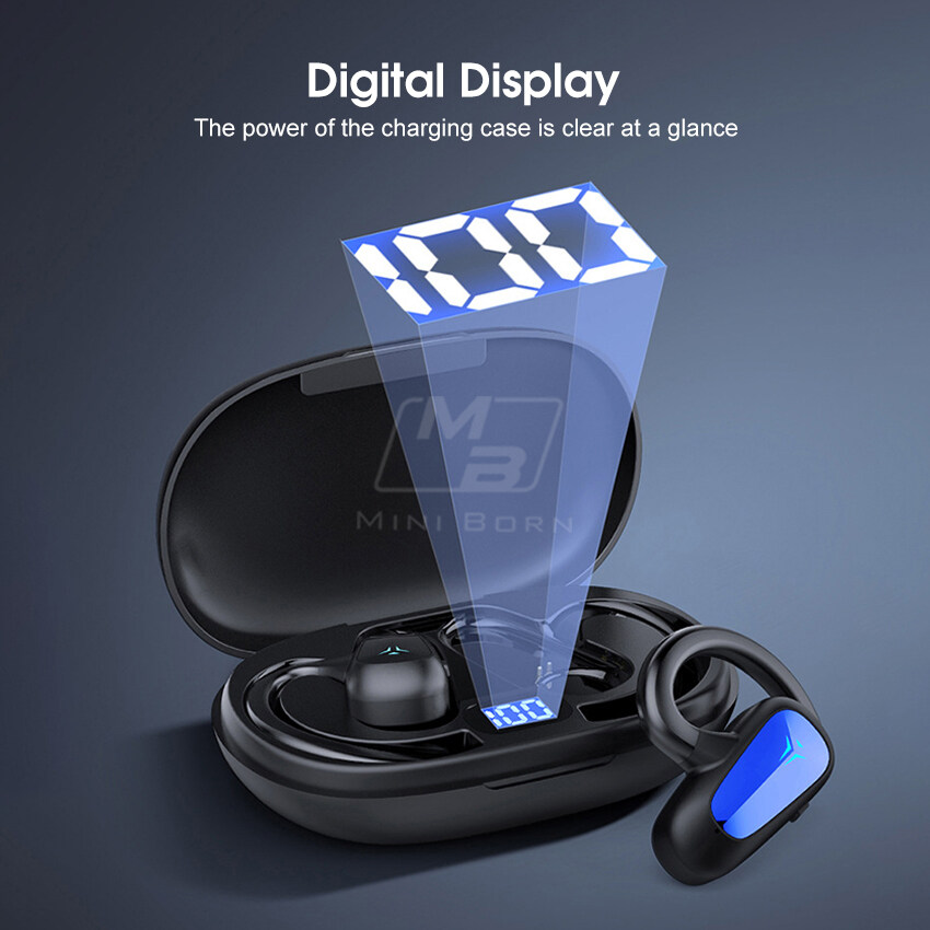 Mini Born Wireless Bluetooth 5.2 Earphone Bone Conduction Headphones TWS Digital Display Bluetooth Headset Non-In-Ear Earbuds Waterproof Earphones for Running Bicycling Hiking Driving Workou