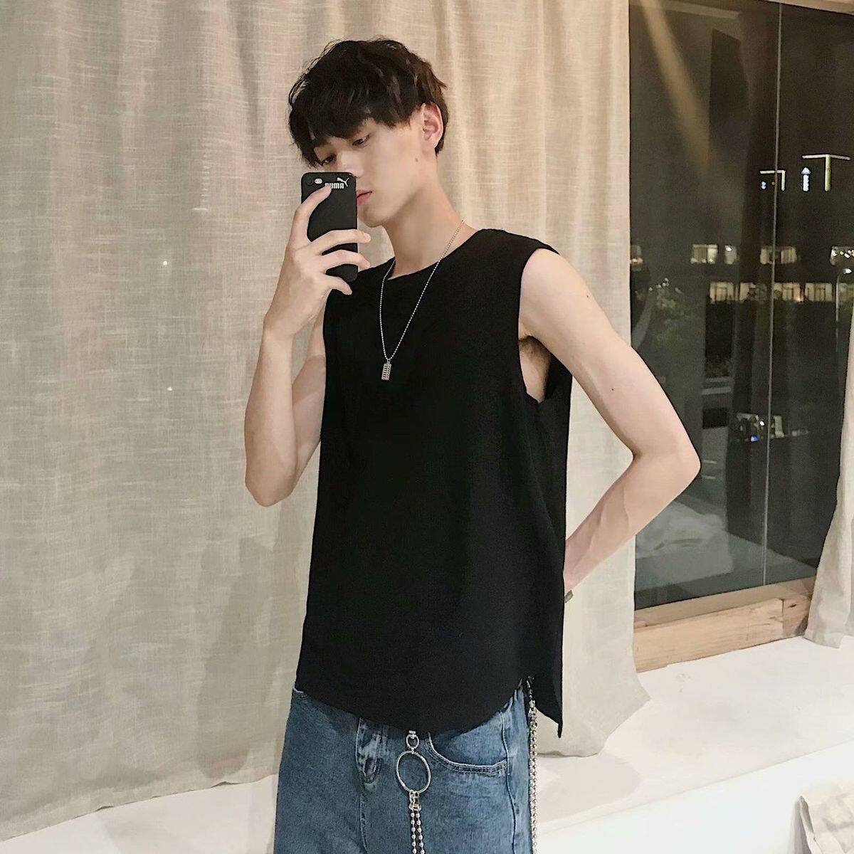 S-3XL t shirt Men Korean Style Sleeveless Fashion Tops Casual Plain Vest