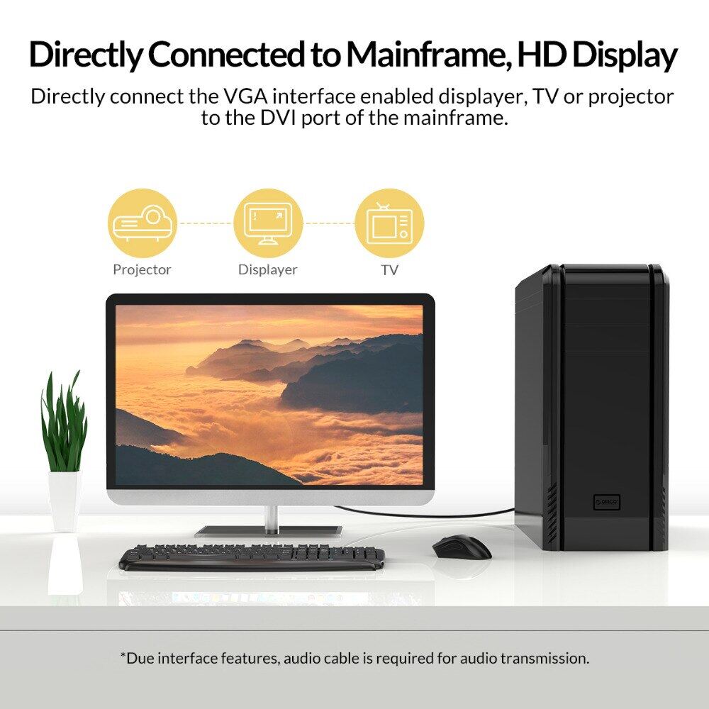 ORICO DVI to VGA Desktop Assembly Display Cable Adapter Gold Plated 1080P HD Video Converter Cable For TV PC Projector Displayer