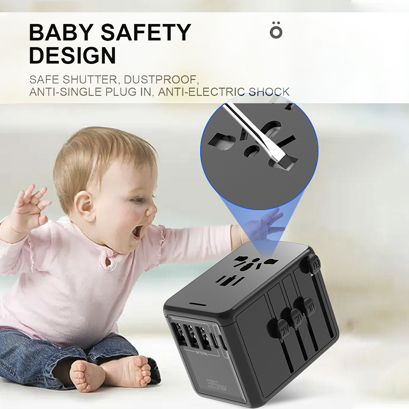 Universal Travel Plug Adapter Charger PD35W Fast Charging 3 USB PORT + 2 TYPE C PORT - US/UK/AU/EU Port Wall Charger