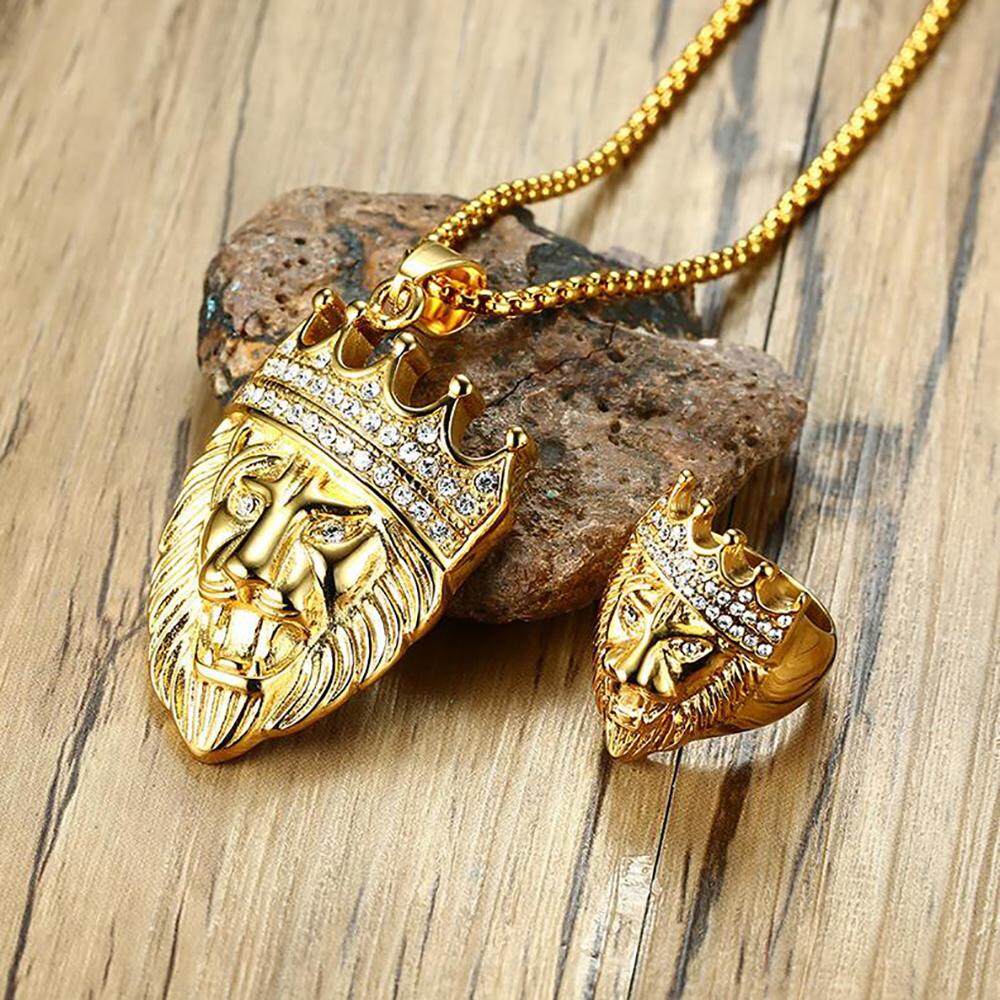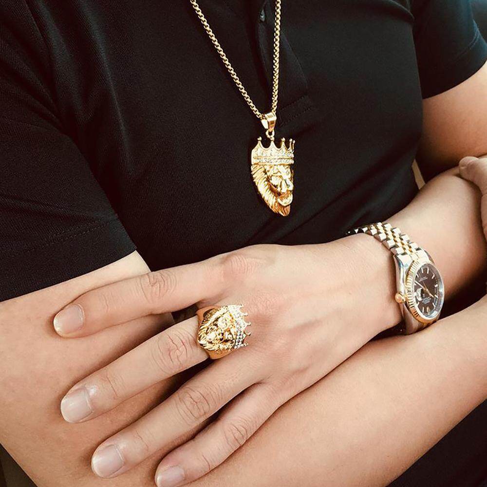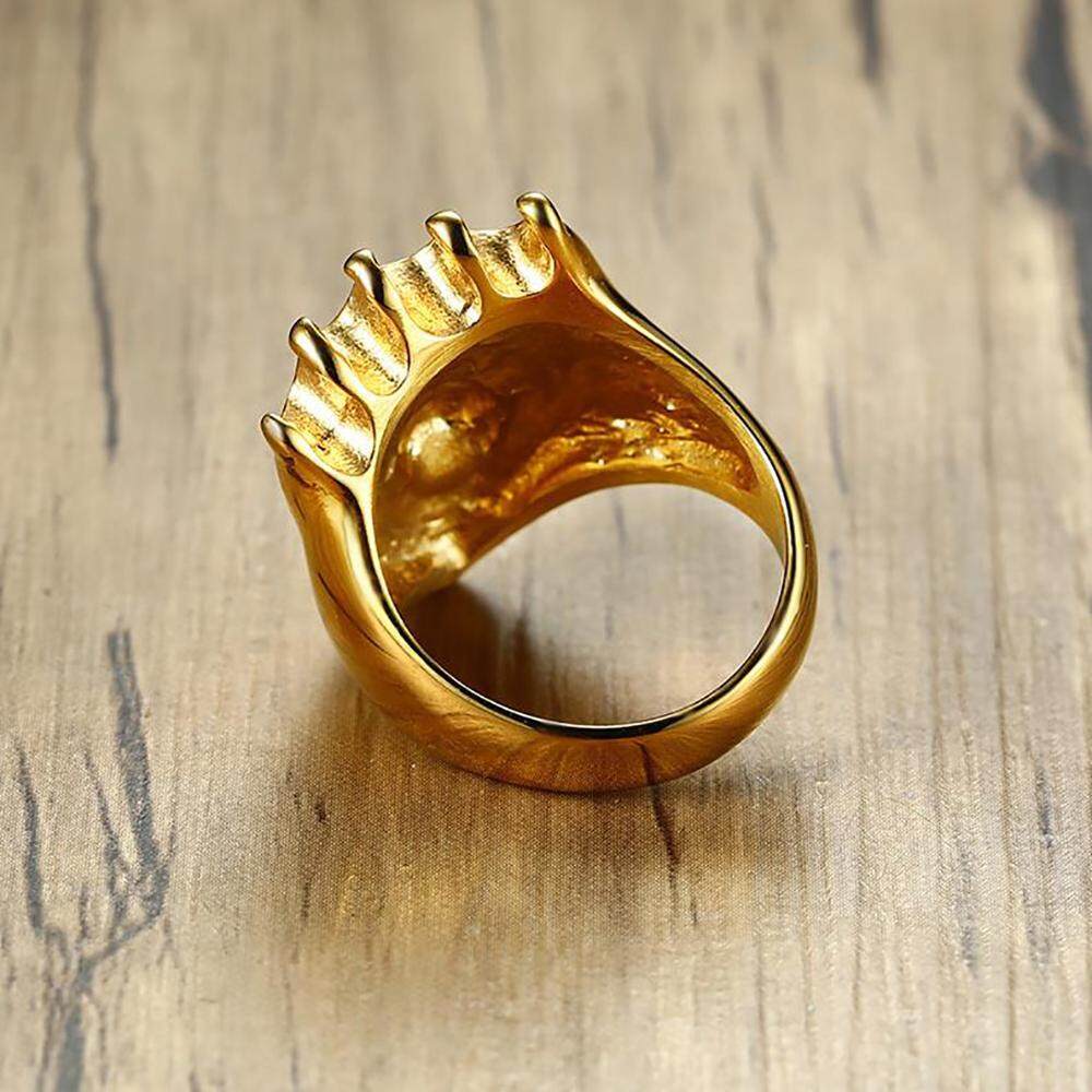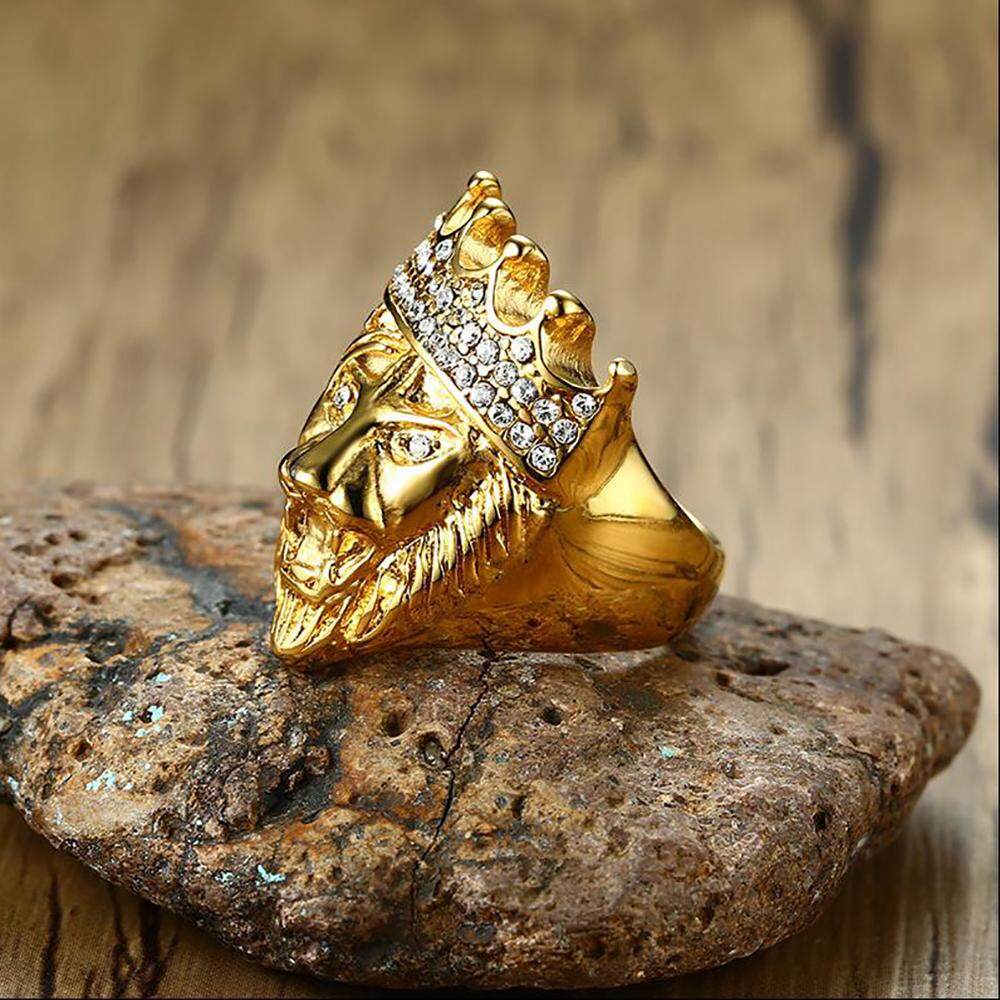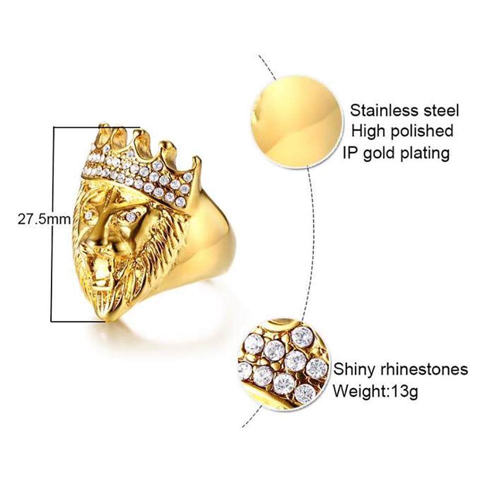 Kemstone Stainless Steel Crystal Gold Plated Crown Lion Ring For Men
