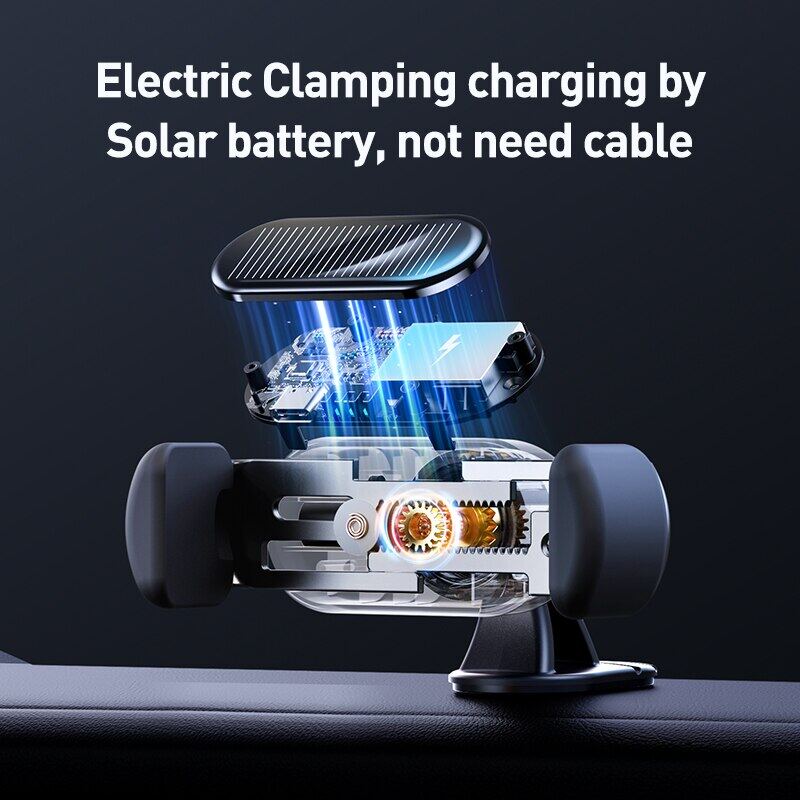 Baseus Phone Holder in Car Solar Battery Electric Auto Clamping Car Cell Phone Stand GPS Support Xiaomi Car Mount For iPhone