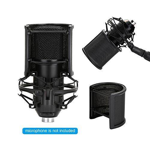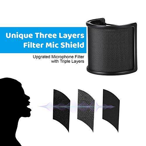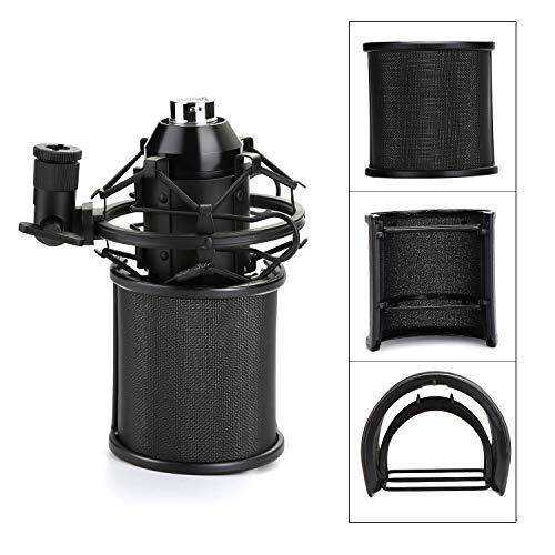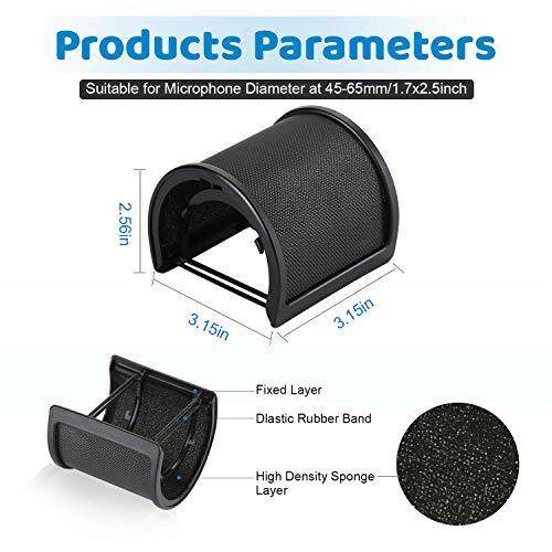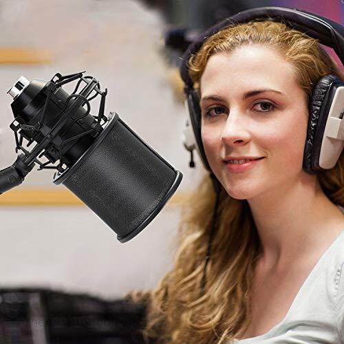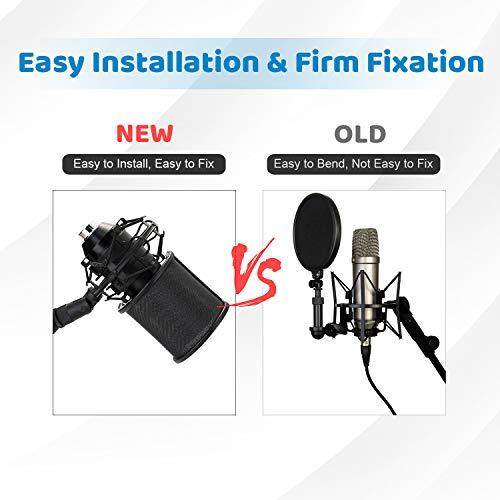 AGPtek [2020 Release] Microphone Pop Guard, Triple Net Metal Layer, Pop Blocker, Windscreen, Noise Prevention, Microphone Filter, Supports 45mm-63mm Microphones, Elastic Rubber Band Included (Black),