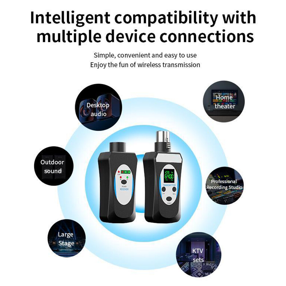 1. Advantages and Scenarios: The microphone wireless transceiver solves the wireless audio signal transmission between the microphone and the audio, the mixer, and the sound card, realizing the expansion effect of wireless audio transmission, and solving the traditional wiring mode. This product is suitable for stage performances, outdoor entertainment, speeches, outdoor performances, and other places